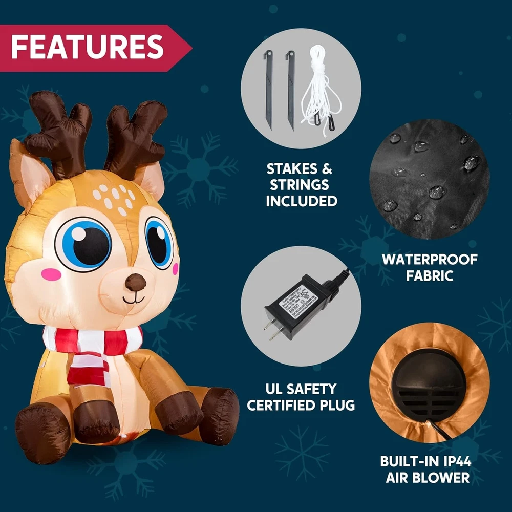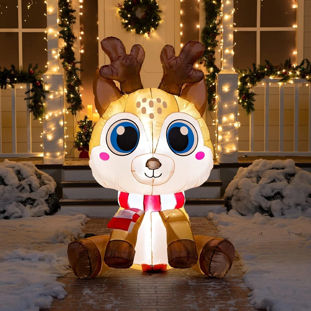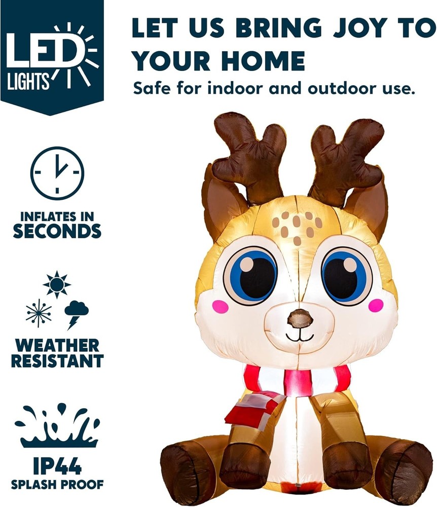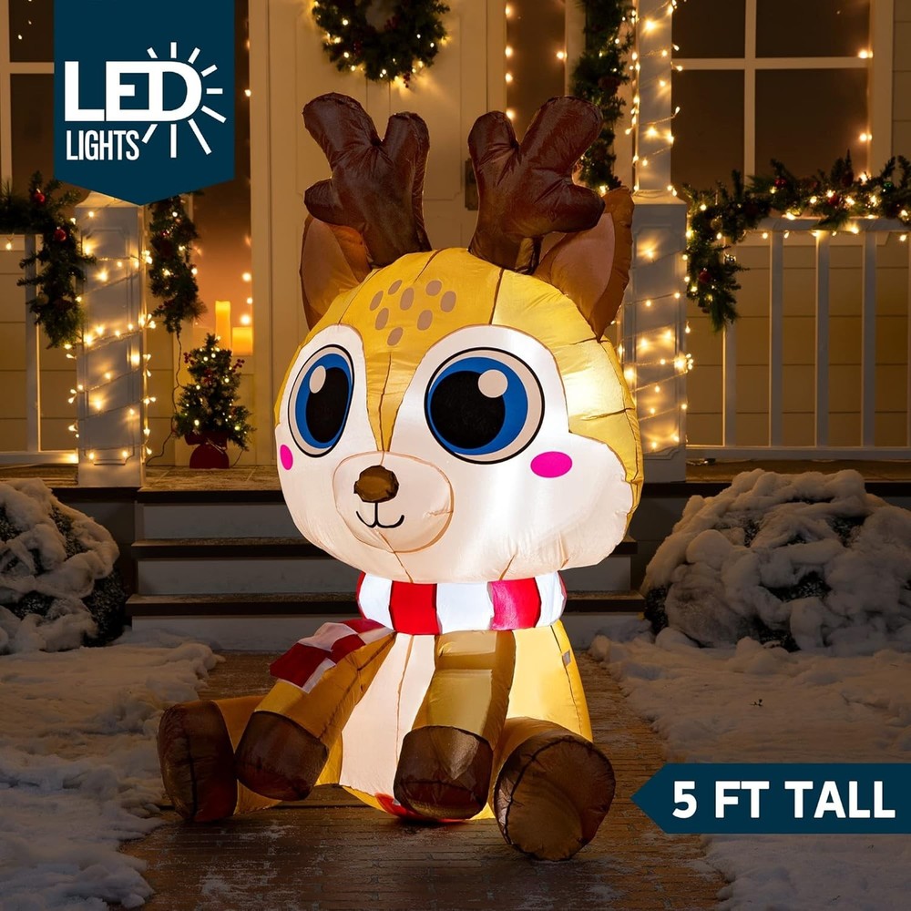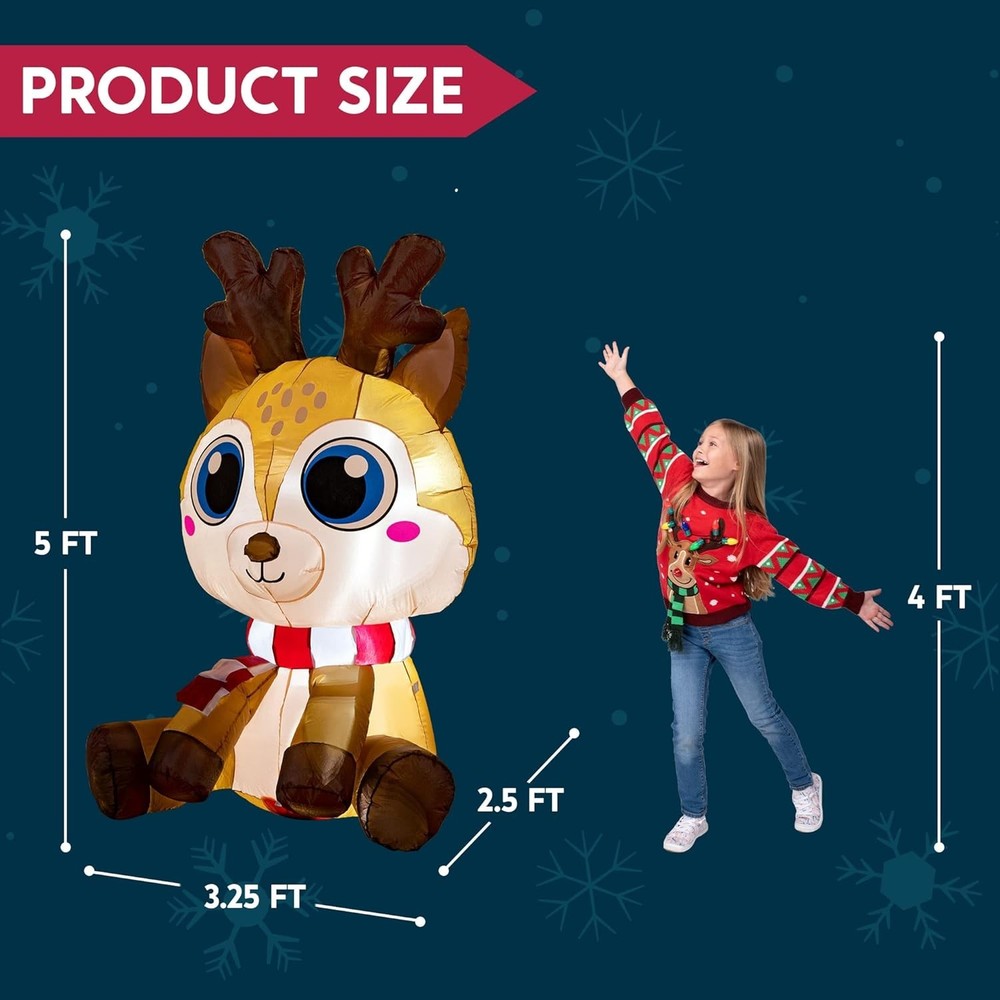 5 FT Tall Christmas Inflatable Cartoony Reindeer with Built-in LEDs