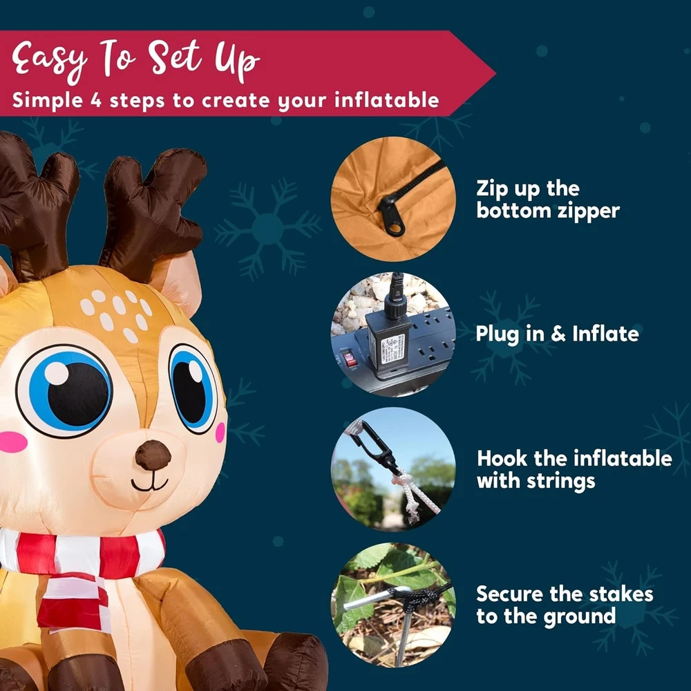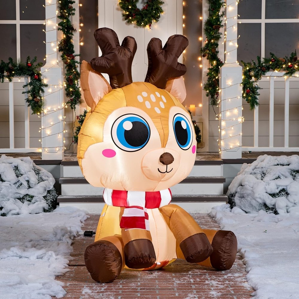 Home5 FT Tall Christmas Inflatable Cartoony Reindeer with Built-in LEDs