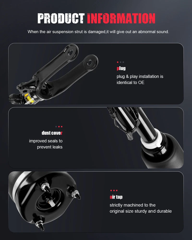 Important Notice: Just like the picture, Professional installation required Placement on Vehicle: Left, Right, Front, Rear Package: Box Features: Sealed Interchange Part Number: 1643204313,1643204413,1643204613,1643205813,1643205913 Platform: X164 W164 Manufacturer Warranty: 1 Year Quantity: 5PCS Minimum Operating Pressure (psi): 90 Included Hardware: None Brand: cfspeed-autoparts Manufacturer Part Number: CF840460J01 Upper Mount Type: Stud Type: Air Suspension Strut Material: Iron, Aluminium Alloy, Rubber gtin13: Does not apply Drive Layout: Front Engine RWD & 4WD Maximum Operating Pressure (psi): 160 Metal Fitting Connection Design: Standard Hose Thread OE Spec or Performance/Custom: OE Spec Lower Mount Type: U-Bracket Instruction Manual: No Custom Bundle: Yes Superseded Part Number: 1643200004,1643200204,1643200304,1643200504,1643200904 UPC: Does not apply Return Policy: 30 Days Free Return Or Exchange OE/OEM Part Number: 1643200731,1643201131,1643202031,1643202131,1643202731 Adjustable: Yes Single Weight(LB): 80.138 Fitment Type: Direct Replacement