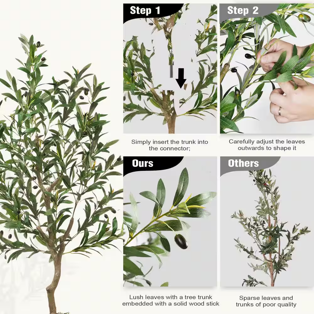Fast Shipping On All Items 30 Days Money Guarantee Customer Support Excellent Service 100% Satisfaction Satisfaction Guaranteed 5 Ft. Artificial Olive Tree with White Planter 60In Fake Plants Indoor Outdoor Realistic Large Faux Potted Tree Home Dec Specification Color Family Green Container Finish Family White Container Material Plastic Container Type Planter Indoor/Outdoor Indoor,Outdoor Material Polyethylene Plant Type Olive Product Weight (lb) 8.73 lb Returnable 90-Day Container Depth (in) 16.1 in Container Height (in) 16.1 in Container Width (in) 9.4 in Product Height (ft) 5 ft Product Height (in) 60 in Product Width (in) 18.9 in 18.9 inches x 16.1 inches x 5.0 ft. Weight: 8.73 lb Item Description Made of high-quality plastic and concrete for durability Features 485 lifelike leaves and 20 realistic fruits Adjustable branches allow you to create the desired fullness 5 ft. artificial olive tree with white planter 60in fake plants indoor outdoor realistic large faux potted tree with 485 leaves 20 fruits - faux olive tree plants with white planter for home office décor why choose us ?-bottom basin reinforcement technology-more realistic and lush 485 leaves-thick, sturdy, and lifelike tree trunk the high-quality materials and attention to detail ensure a natural and convincing look that enhances the aesthetic of your home or office. Its adjustable branches allow you to create the desired fullness and shape effortlessly, making it adaptable to any decorative vision. Its realistic leaves and fruits are made from non-toxic, pet-friendly materials, providing peace of mind alongside aesthetic appeal. Standing at an impressive 5 ft. tall, this artificial olive tree is the perfect addition to a wide variety of indoor settings. Package included:1-pieces 5 ft. artificial olive tree;1-pieces white planter; 1-pack Realistics mosses Ralistic appearance: the artificial olive tree features meticulously crafted 485 lifelike leaves and 20 realistic fruits, providing a highly detailed and vibrant decoration for any space Sturdy and adjustable design: our artificial olive tree comes pre-assembled in a heavy-duty pot made of durable plastic and concrete, ensuring superior stability Durable and safe materials: crafted from high-quality, eco-friendly materials, the artificial olive tree boasts a reinforced structure for enhanced strength and durability Versatile decoration: whether you're decorating your living room, bedroom, office, entryway, patio, or even commercial spaces like bookstores and coffee shops, this tree fits seamlessly Hassle-free maintenance: requires no watering, pruning, or fertilizing simply dust the tree regularly to maintain its fresh and vibrant look Warm tips for you: if you are worried about the tree falling over, you can add something heavy into the pot About us We offer the best prices around on high quality products. Our E-store includes media such as books, movies, music and games while offering electronics, toys, sporting apparel, clothing, tools, general home, garden items and more. Shipping We are always working hard to ensure your package arrives as soon as possible. Please understand that some factors like weather, high postal traffic, and the performance of shipping companies are outside of our control. We offer free shipping to the lower 48 states and ship within 2-3 business days of payment, usually sooner. We do not accept P.O. Boxes. Please provide a physical address. For shipping outside of the continental USA, we only use eBay's Global Shipping Program.The item is shipped to KY and then sent to the rest of the world. International customers are responsible for all duties and taxes. Continue to check out to calculate costs for shipping the item to your country. Messages regarding eBay's Global Shipping Program MUST be directed at eBay EXCLUSIVELY. Returns We offer a 30-Day Return Policy on items in which you are not completely satisfied with. You have the option of a full-refund or an exchange of the item. No returns are available on items shipped outside of the USA Satisfaction We try over very best to make sure every customer is completely satisfied. If there's a problem, message us! We're happy to help. Payment Options Shop With Confidence