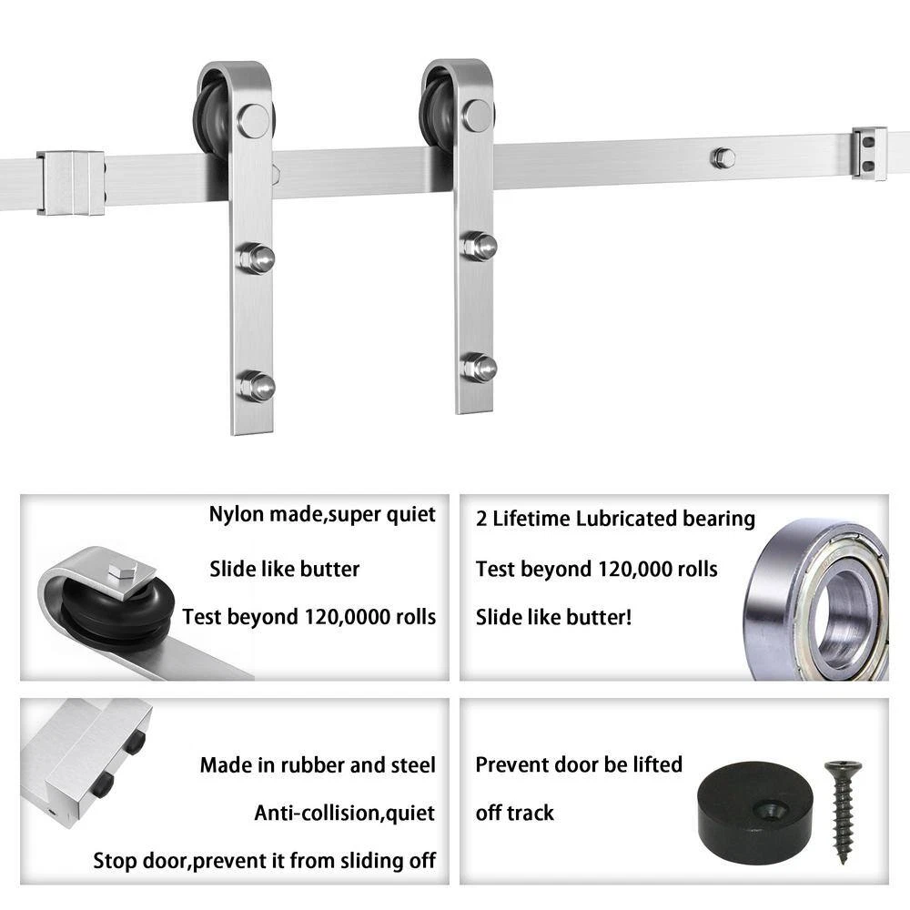 Fast Shipping On All Items 30 Days Money Guarantee Customer Support Excellent Service 100% Satisfaction Satisfaction Guaranteed 5 Ft./60 In. Stainless Steel Flat Rail Bent Strap Barn Door Hardware Kit for Single Wood Door Non-Routed Floor Guide Specification Builders Hardware Product Type Wall Mount Door Hardware Color/Finish Stainless Steel Features No Features Hardware Color Family Silver Hardware Finish Family Silver Material Stainless Steel Number of Doors No Door Included Returnable 90-Day Manufacturer Warranty 5-year warranty Product Depth (in) 60 in Product Height (in) 4 in Product Width (in) 6 in Total Assembled Track Length (in) 60 in. 6.0 inches x 60.0 inches x 4.0 inches. Item Description WINSOON is a leading manufacturer of sliding barn door hardware. Craftsmanship, excellence and innovation are our primary pursuits. We enjoy working with raw materials to make them into something extraordinary. Trustful quality and workmanship is what you can expect when you choose WINSOON. We lead the way in sliding barn door hardware and we invite you to create something unique. About us We offer the best prices around on high quality products. Our E-store includes media such as books, movies, music and games while offering electronics, toys, sporting apparel, clothing, tools, general home, garden items and more. Shipping We are always working hard to ensure your package arrives as soon as possible. Please understand that some factors like weather, high postal traffic, and the performance of shipping companies are outside of our control. We offer free shipping to the lower 48 states and ship within 2-3 business days of payment, usually sooner. We do not accept P.O. Boxes. Please provide a physical address. For shipping outside of the continental USA, we only use eBay's Global Shipping Program.The item is shipped to KY and then sent to the rest of the world. International customers are responsible for all duties and taxes. Continue to check out to calculate costs for shipping the item to your country. Messages regarding eBay's Global Shipping Program MUST be directed at eBay EXCLUSIVELY. Returns We offer a 30-Day Return Policy on items in which you are not completely satisfied with. You have the option of a full-refund or an exchange of the item. No returns are available on items shipped outside of the USA Satisfaction We try over very best to make sure every customer is completely satisfied. If there's a problem, message us! We're happy to help. Payment Options Shop With Confidence