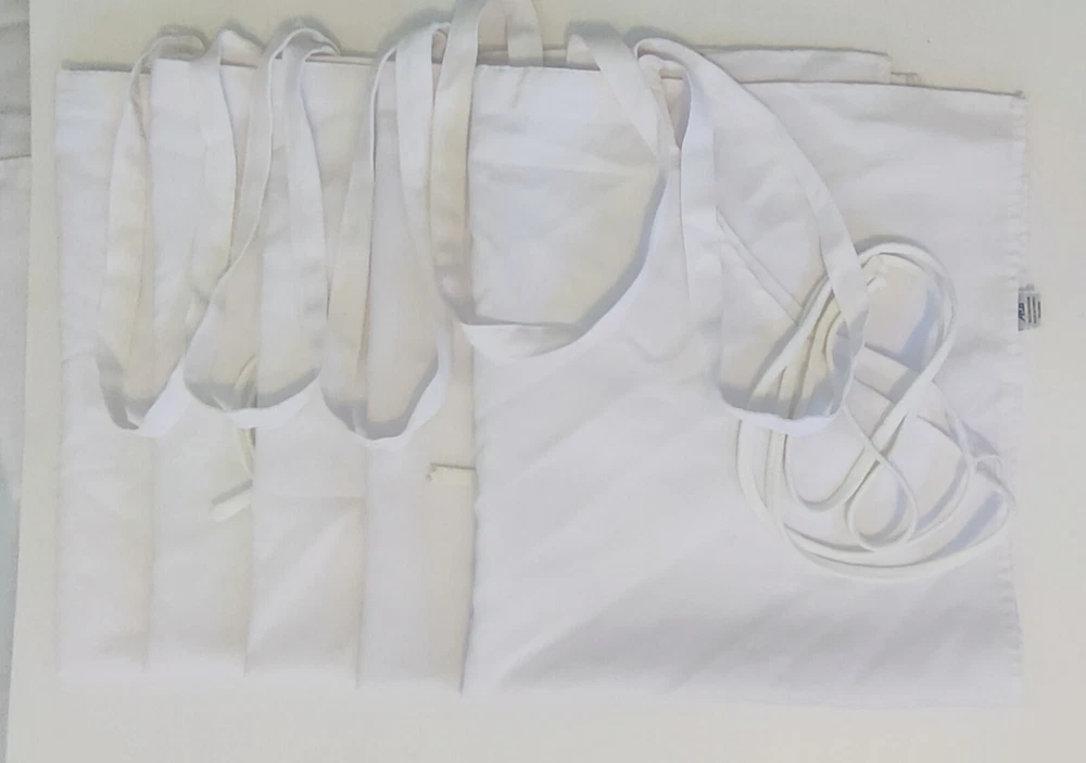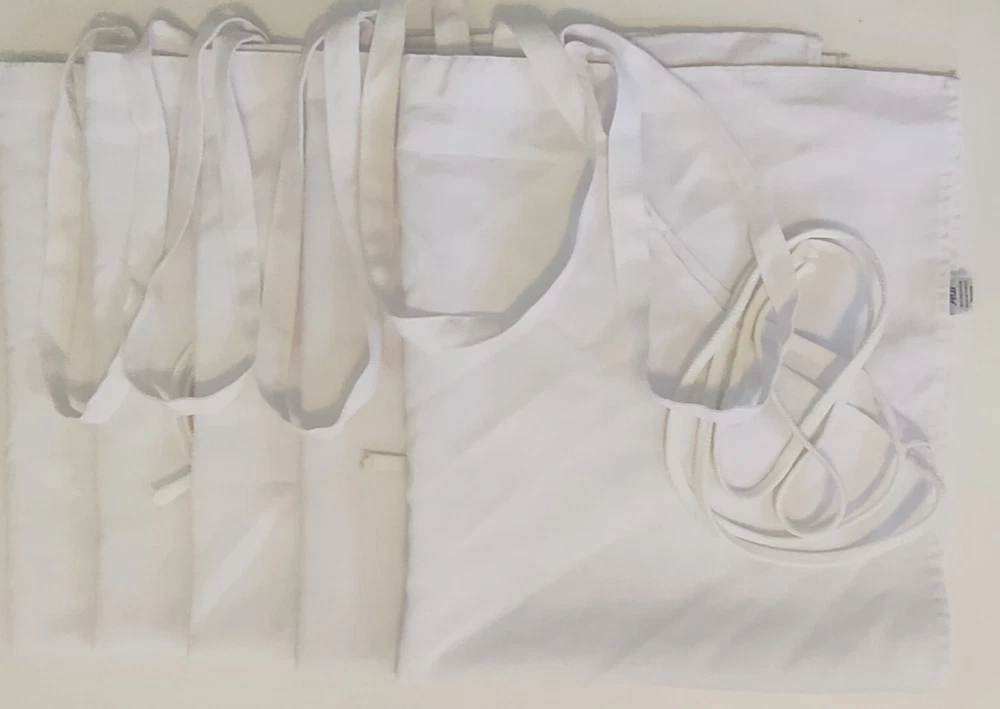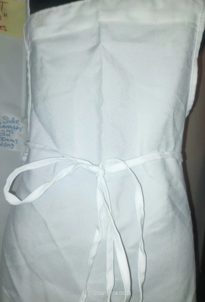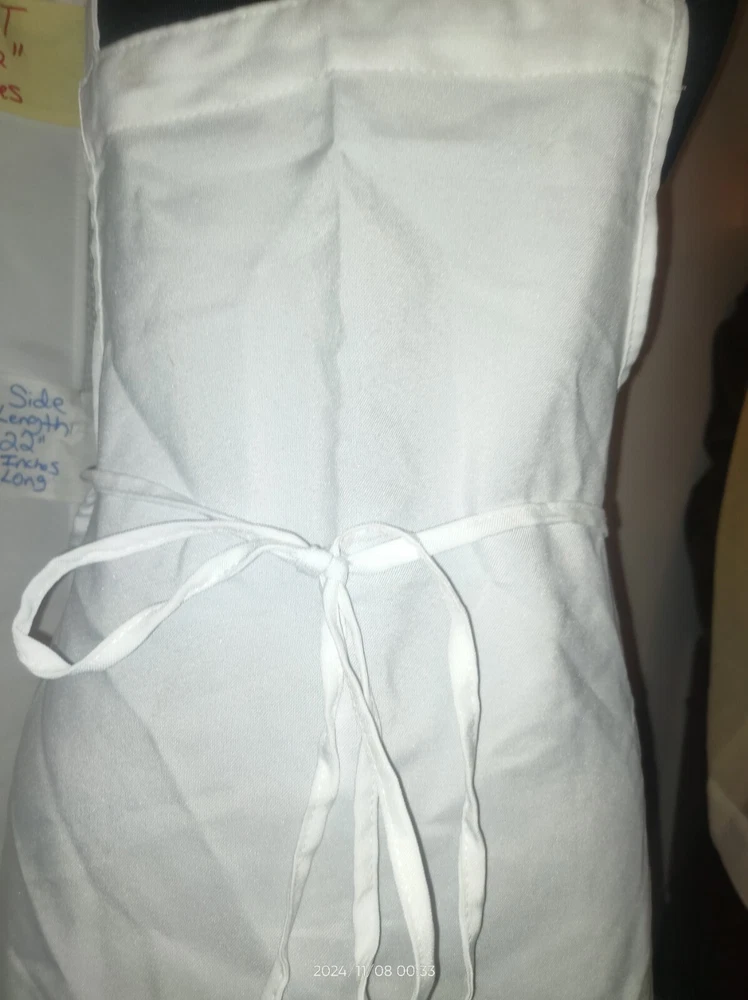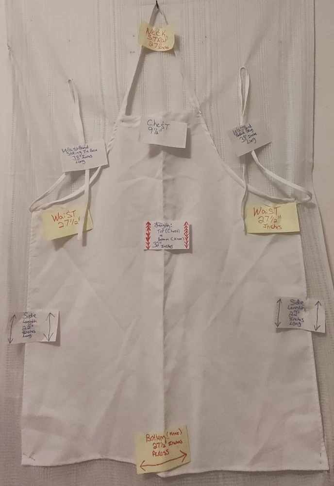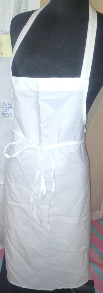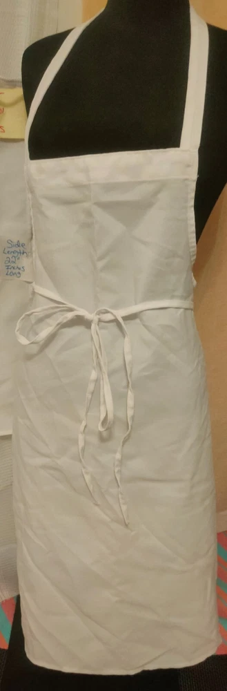 In Used Condition.Lot Includes 5 Aprons. Some May Have Very Faint Spots/Stains. Please See All Photos For More Details. Measures About: 27" Neck Strap 9 1/2" Chest 27 1/2" Waist 32" Long ( Chest To Knee ) with 38" Tie String Waistband Braided 22" Long On Each Side This 5 Guardian White Kitchen Chef Bib Apron is perfect for cooking, butchering, or any restaurant or lunchroom activity. Made of 100% polyester, it is durable, stain-resistant, high-quality, and water-repelling. The classic style and solid pattern make it suitable for any occasion and suitable for both men and women, adults and children. The apron features a tie bib design and is available in one size that fits all. It is also personalizable, making it a great gift for any cooking enthusiast. Whether you're a professional chef or just enjoy cooking at home, this apron is a must-have.