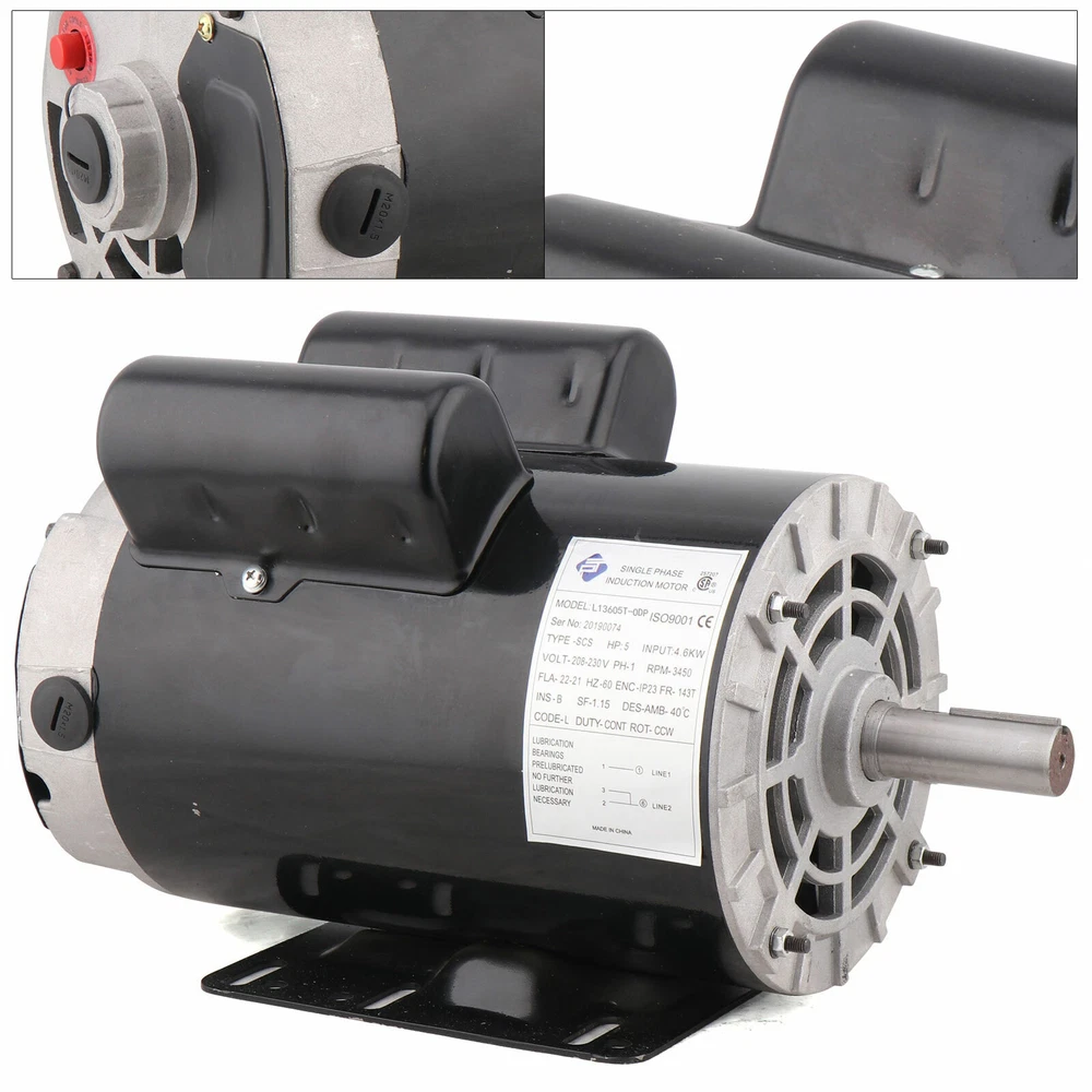 5 HP Air Compressor Electric Motor Single Phase 3450RPM 7/8" Shaft Heavy Duty Attention: Not all 5 hp motors are exactly the same. So, with the new motor you're purchasing, it's vitally important that you match up the specs on your old motor. All of the information you need to know can be found right on your electric motors nameplate/sticker, which usually can be found on the side of the motor. Feature: 1.Reduced starting amperage design to ensure the reduced voltage starting at rated load. 2.Equipped Manual thermal overload, capacitors and high quality ball bearings to ensure the lifetime. 3.Open drip-proof is better used in environment that are relatively clean and dry environments. Special design for Air Compressor duty. CCW only. 4.Special design for Air Compressor duty. 5.Motor is Non-Reversible CCW (Counter Clockwise) ONLY. Specification: Horsepower (HP):5 Hp AC Frequency Rating: 60 Hz Frame Size: 143/5T Base RPM: 3450 Volt: 208-230V INPUT: 4.6kW Service Factor: 1.0 Full Load Amps: 22-21 Shaft Diameter: 7/8 in Shaft Length: 2.25in Shaft Type: Keyed ENC: IP23 FR: 143T SF: 1.0 AC Phase: Single Phase Reversible/Non-Reversible: Non-Reversible ROT: CCW Overload: Yes / Manual reset button Additional Product information: Rigid Base - CL B Insulation 40 C / 104 F Ambient Temp Package includes: 1*Air Compressor Motor Note: 1: Amperage This is your electric motors TRUE power rating. HP ratings have been made suspect over the years by large retailers who like to use "peak HP" in their terminology. The Motor's amp rating does not lie. Please make sure your FL amp (FULL LOAD) rating on the motor you're replacing is within 10% of the FL Amp rating of the motor you intend to buy. Example 1: If your current motor says 21 FL amps at 230VAC. Then you would be safe replacing your motor with a 19FL amp thru 23 FL amp electric motor 230volt. Example 2: If your current motor says 21 FL amps at 230VAC. Then you replace it with a 15 FL amp motor. That 15A motor is NOT strong enough for the task, and will indefinitely fail. 2: Frame Size The frame not only constitutes the bolt pattern, it also depicts the overall size and torque. The larger the frame, the stronger the motor. If your current motor you're replacing shows 56, 143T or 145T on the nameplate. Its extremely important that you replace it with that frame size. Improperly sized motors will inevitably result in motor failures. Example: If your existing motor says 5HP 184T frame, and you elect to replace it with a 5HP. That would be similar to using a 4 cylinder engine to power a school bus. This is why its important that your new motors frame size matches the old motor you're replacing. This will ensure your replacement motor will work for years to come. 3: Phase and Voltage If your machine requires a 230volt electric motor on single phase power. You would want to incorporate a 1-phase 230vac electric motor for your application. 230V electric motors cannot handle voltages less than 208V. They will run too hot and you will experience motor failure. 4: RPM Matching up the RPM is quite important. The wrong speed can damage your pump. The RPM does not have to match exactly, but you do need to be the neighborhood. Example: 3510rpm, 3550, 3450 are all the same. They all fall under the umbrella of whats known as 3450RPM motors. 5: Shaft Diameter With a tape measure. Measure the outside diameter on your electric motors shaft. By matching up the proper shaft diameter, you will be able to reuse the original motor pulley that came on your machine. Payment Delivery details Terms of sales About us Contact us Payment We accept ebay payment 。 Fees such as import duties, taxes are not included in the item price or shipping costs. These charges are the buyer's responsibility. Delivery details Shipping: 2-9 working days to: USA Terms of sales We maintain high standards of excellence and strive for hundred percent customer satisfaction. Feedback is very important to us. We hope that you contact us immediately before you give neutral or negative feedback, so that we can address your concerns. It is impossible to address issues if we do not know about them! About us Your satis faction is our ultimate goal. We work hard to earn your trust and future business. Our certified technicians have tested each item before shipping. The unit comes with 1 year limited warranty on all manufacturing defects. a) If you receive a defective item, you may return it or ask for a discount. Please contact us within 14 days after you receive the package. b) What you returned must be intact and in its original packaging as re? u. Customer is responsible for shipping costs of the returned item. c) We will cover the cost of shipping back t with the shipping rate indicated in the registration page. We will send you a new unit or refund the full payment you paid. Thank you. Contact us Business Hour Business Hour: Monday To Friday: 8:30 AM to 5:00 PM (Beijing China time) Due to time zones, our reply to your questions may not be immediately. But within above working time, we will reply your email within 24 hours. If it's non-workdays, please kindly be patient and wait till Monday. Please contact us with ebay message. Please feel free to contact us if you have any questions. Monday To Friday: 8:30 AM to 5:00 PM (Beijing China time) Due to time zones, our reply to your questions may not be immediately. But within above working time, we will reply your email within 24 hours. If it's non-workdays, please kindly be patient and wait till Monday. Please contact us with ebay message. Please feel free to contact us if you have any questions. On Dec 18, 2024 at 17:59:48 PST, seller added the following information: