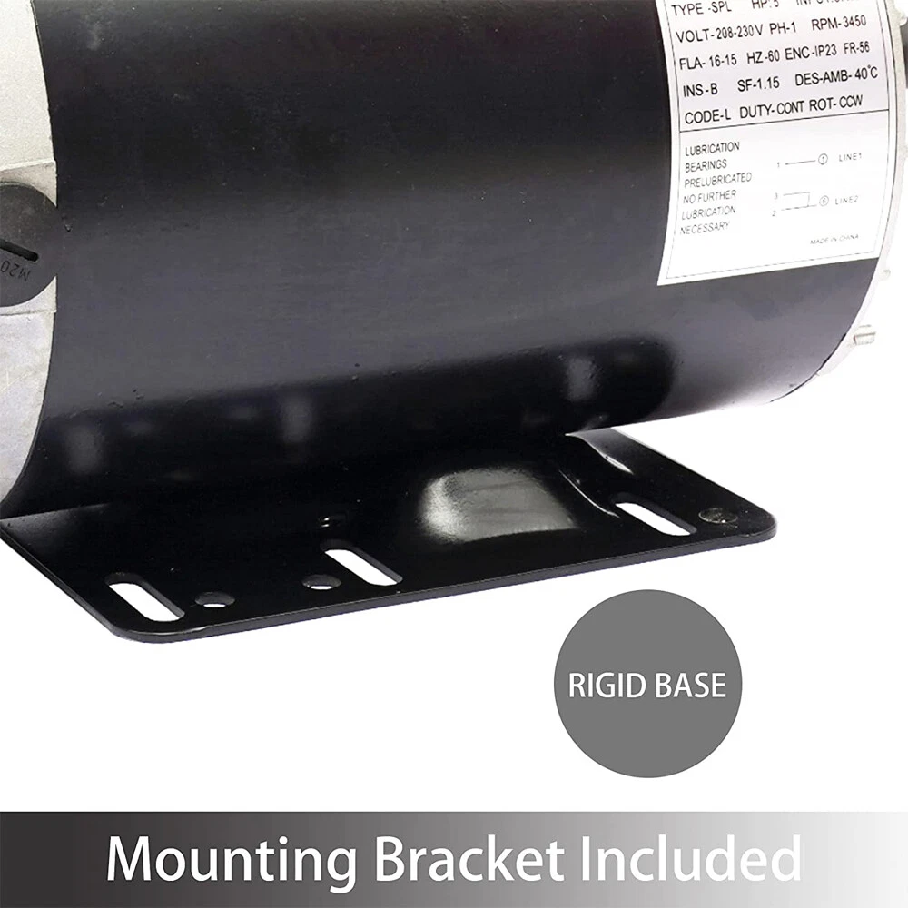 NOTE Copper wires are more durable than aluminum wires Specification: Horsepower: 5 SPL HP Amperage: 16 fl amps at 230v Phase: One / Single Phase Voltage: 208-230 ( 208 volt is the lowest voltage this motor will handle) RPM: 3450 Frame: 56 Shaft Diameter: 5/8" Keyed shaft Frequency: 60hz SF: 1 Protection Full Load amps: 15.0 Overload: Yes / Manual reset button Additional Product information: Rigid Base - CL B Insulation 40 C / 104 F Ambient Temp Condition: New Motor:CCW Suitable For: Air Compressor Applications Package includes: 1*Air Compressor 5 HP SPL 5/8" Shaft Air Compressor Duty Electric Motor 3450 RPM Single Phase 5 HP SPL Air Compressor 3450 RPM 60 Hz Electric Motor Single Phase 56 Frame 15A NOTE Copper wires are more durable than aluminum wires Specification Horsepower: 5 SPL HP Amperage: 16 fl amps at 230v Phase: One / Single Phase Voltage: 208-230 ( 208 volt is the lowest voltage this motor will handle) RPM: 3450 Frame: 56 Shaft Diameter: 5/8" Keyed shaft Frequency: 60hz SF: 1 Protection Full Load amps: 15.0 Overload: Yes / Manual reset button Additional Product information: Rigid Base - CL B Insulation 40 C / 104 F Ambient Temp Condition: New Motor:CCW Suitable For: Air Compressor Applications Package includes 1*Air Compressor If you have any question , please contact us , and we will reply you as soon as possible. Note: The horsepower of this product is 5HP SPL, which is different from 5HP. Before purchasing, please note whether the horsepower of your original product is 5HP SPL, otherwise it will not fit. Payment Delivery details Terms of sales About us Contact us Payment We accept ebay payment 。 Fees such as import duties, taxes are not included in the item price or shipping costs. These charges are the buyer's responsibility. Delivery details Shipping: 2-9 working days to: USA Terms of sales We maintain high standards of excellence and strive for hundred percent customer satisfaction. Feedback is very important to us. We hope that you contact us immediately before you give neutral or negative feedback, so that we can address your concerns. It is impossible to address issues if we do not know about them! About us Your satis faction is our ultimate goal. We work hard to earn your trust and future business. Our certified technicians have tested each item before shipping. The unit comes with 1 year limited warranty on all manufacturing defects. a) If you receive a defective item, you may return it or ask for a discount. Please contact us within 14 days after you receive the package. b) What you returned must be intact and in its original packaging as re? u. Customer is responsible for shipping costs of the returned item. c) We will cover the cost of shipping back t with the shipping rate indicated in the registration page. We will send you a new unit or refund the full payment you paid. Thank you. Contact us Business Hour Business Hour: Monday To Friday: 8:30 AM to 5:00 PM (Beijing China time) Due to time zones, our reply to your questions may not be immediately. But within above working time, we will reply your email within 24 hours. If it's non-workdays, please kindly be patient and wait till Monday. Please contact us with ebay message. Please feel free to contact us if you have any questions. Monday To Friday: 8:30 AM to 5:00 PM (Beijing China time) Due to time zones, our reply to your questions may not be immediately. But within above working time, we will reply your email within 24 hours. If it's non-workdays, please kindly be patient and wait till Monday. Please contact us with ebay message. Please feel free to contact us if you have any questions. On Dec 1, 2024 at 23:06:36 PST, seller added the following information: