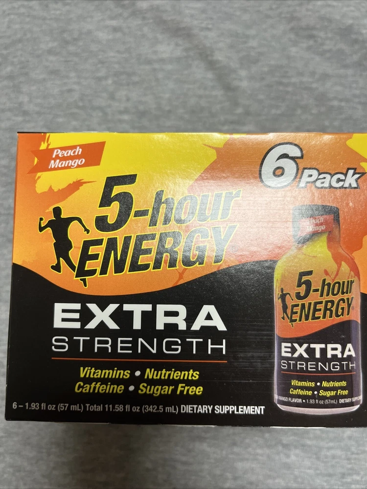 5 Hour Energy Extra Strength 6 Pack Peach Mango New 6 - 1.93fl Oz Bottles