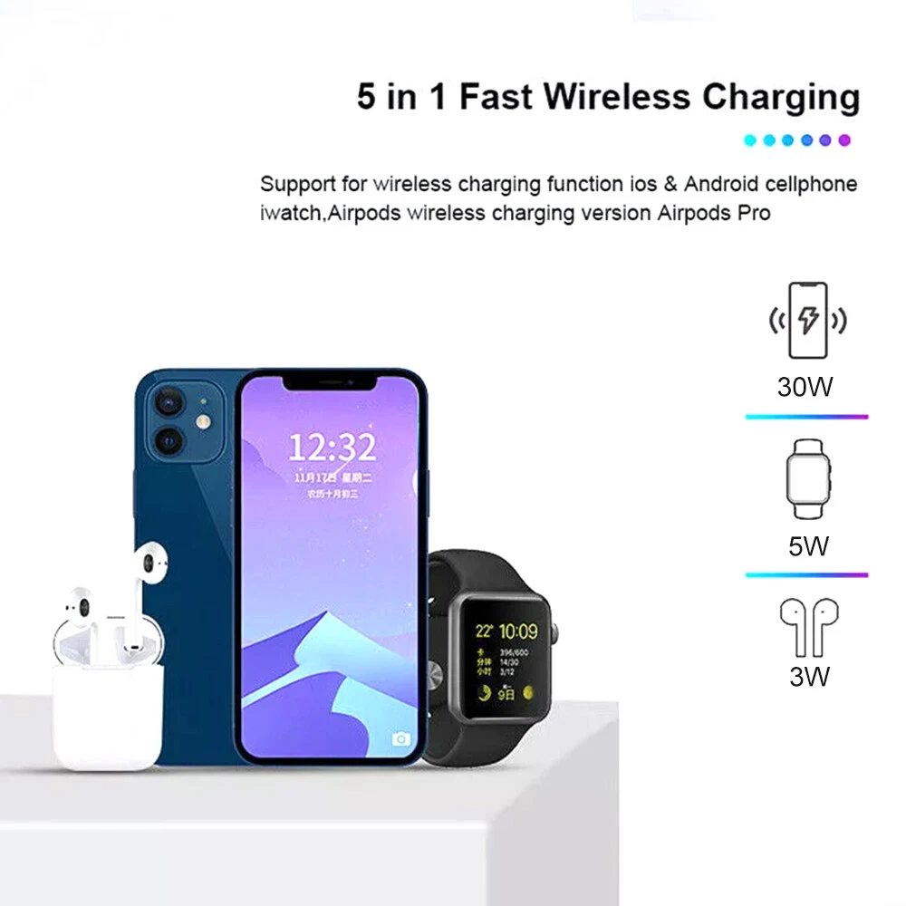 Store Categories Store Categories Other 5 In1 Magnetic Wireless Charger Dock Station For Apple Watch Ultra 9 8 iPhone 16 Details Attention: 1. For a fast charging experience, please use a 9V-2A or 12V-2A power adapter (adapter not included). 2. The watch charger is only for Apple Watch , it can't charge Samsung Watch or other brand watches. Features: 1. [5-in-1 Charging Station] The wireless charger conveniently charges your iPhone, Apple Watch, AirPods, and other devices with wireless charging capabilities at the same time. The charging station makes it easy to charge your entire desktop and nightstand, so say goodbye to tangled cords. Compatible with iPhone 16, 15, 14, 13, 12, 11Pro/Max/Mini/Plus, X, XR, XS/Max, SE, 8/Plus, iWatch 8/7/6/5/4/3/2/SE, AirPods 2/3/pro/pro 2. 2. [Rapid Wireless Charger] Simply place your wireless device on the charging station, make contact and start charging steadily and efficiently. After many extreme tests and fan feedback, we use high power charging chips and world-class electronics to ensure the fast charging quality of the charging station. 3. [Safe Wireless Charger Holder] Wireless charging station with over-current protection, over-voltage protection, over-temperature protection and foreign object detection. The wireless charging station's reasonable internal circuit design prevents overcharging from damaging the device's battery and ensures safe and fast charging of the device. 4. [Foldable Travel Wireless Charger] The wireless charging station for a wide range of iPhone devices features a compact and foldable design that provides fast charging for your iPhone at home, in the office and on the go. The wireless charger can be used as a wireless charger stand with angle adjustment. The wireless charger can be used as a wireless charging pad to keep your phone charged by simply laying it flat. 5. [Fits Cases and Sleep Friendly Indicators] The wireless charger supports most cases up to 2 inches/5 mm thick, eliminating the need to remove the case when charging with the wireless charging station (excluding cases with magnetic or metal attachments). Place your device on the wireless phone charger to start charging, and the LED night light can be turned off manually. So you don't have to worry about the light affecting your sleep. Specifications: *Product Name: 5-in-1 Wireless Charger *Input power: 9V-2A/12V-2A *Mobile phone output: 5W/7.5W/10W/15W/30W *Watch output: 5W (max) *Headphone output: 3W (max) *Charging efficiency: ≥75% *Product material: ABS *Product color: black/white Package Includes: 1 * 5-in-1 wireless charger 1 * Type-C cable Attention: 1. Not included not include the power adapter! 2. Item is limited to charger only, not including headphones, watches! 3. Due to manual measurement, please allow a difference of 1cm error! 4. Depending on the light color or monitor hue may vary! Shipping Policy Payment Method Returns Policy Shipping Policy Payment Method This is the description of Payment Method. Do not dismiss your dream. To be without dream is to be without hope. To be without hope is to be without purpose. Do not run through your life so fast that you forget not only where you have been, but also where you are going. Life is not race, but a journey to be savored each step of the way. Returns Policy This is the description of Returns Policy. Do not dismiss your dream. To be without dream is to be without hope. To be without hope is to be without purpose. Do not run through your life so fast that you forget not only where you have been, but also where you are going. Life is not race, but a journey to be savored each step of the way. Copyright©2017 DataCaciques 5 In1 Magnetic Wireless Charger Dock Station For Apple Watch Ultra 9 8 iPhone 16 Item Description Attention: 1. For a fast charging experience, please use a 9V-2A or 12V-2A power adapter (adapter not included). 2. The watch charger is only for Apple Watch , it can't charge Samsung Watch or other brand watches. Features: 1. [5-in-1 Charging Station] The wireless charger conveniently charges your iPhone, Apple Watch, AirPods, and other devices with wireless charging capabilities at the same time. The charging station makes it easy to charge your entire desktop and nightstand, so say goodbye to tangled cords. Compatible with iPhone 16, 15, 14, 13, 12, 11Pro/Max/Mini/Plus, X, XR, XS/Max, SE, 8/Plus, iWatch 8/7/6/5/4/3/2/SE, AirPods 2/3/pro/pro 2. 2. [Rapid Wireless Charger] Simply place your wireless device on the charging station, make contact and start charging steadily and efficiently. After many extreme tests and fan feedback, we use high power charging chips and world-class electronics to ensure the fast charging quality of the charging station. 3. [Safe Wireless Charger Holder] Wireless charging station with over-current protection, over-voltage protection, over-temperature protection and foreign object detection. The wireless charging station's reasonable internal circuit design prevents overcharging from damaging the device's battery and ensures safe and fast charging of the device. 4. [Foldable Travel Wireless Charger] The wireless charging station for a wide range of iPhone devices features a compact and foldable design that provides fast charging for your iPhone at home, in the office and on the go. The wireless charger can be used as a wireless charger stand with angle adjustment. The wireless charger can be used as a wireless charging pad to keep your phone charged by simply laying it flat. 5. [Fits Cases and Sleep Friendly Indicators] The wireless charger supports most cases up to 2 inches/5 mm thick, eliminating the need to remove the case when charging with the wireless charging station (excluding cases with magnetic or metal attachments). Place your device on the wireless phone charger to start charging, and the LED night light can be turned off manually. So you don't have to worry about the light affecting your sleep. Specifications: *Product Name: 5-in-1 Wireless Char