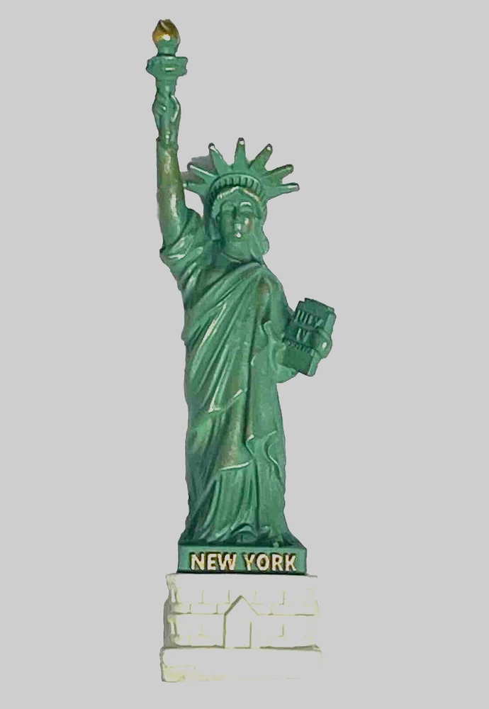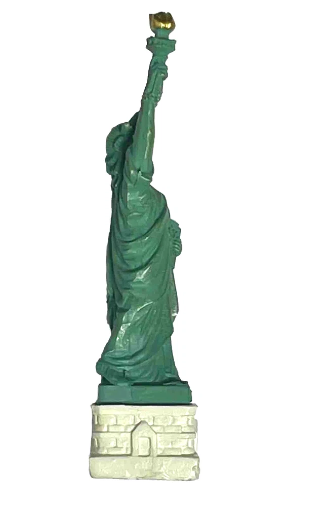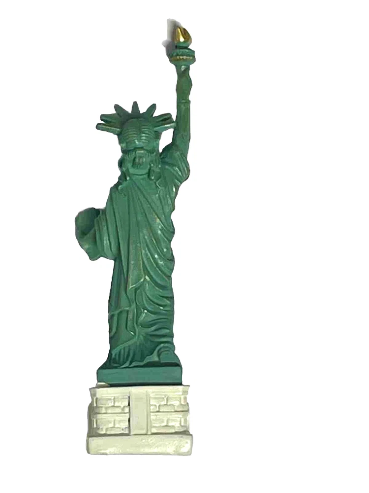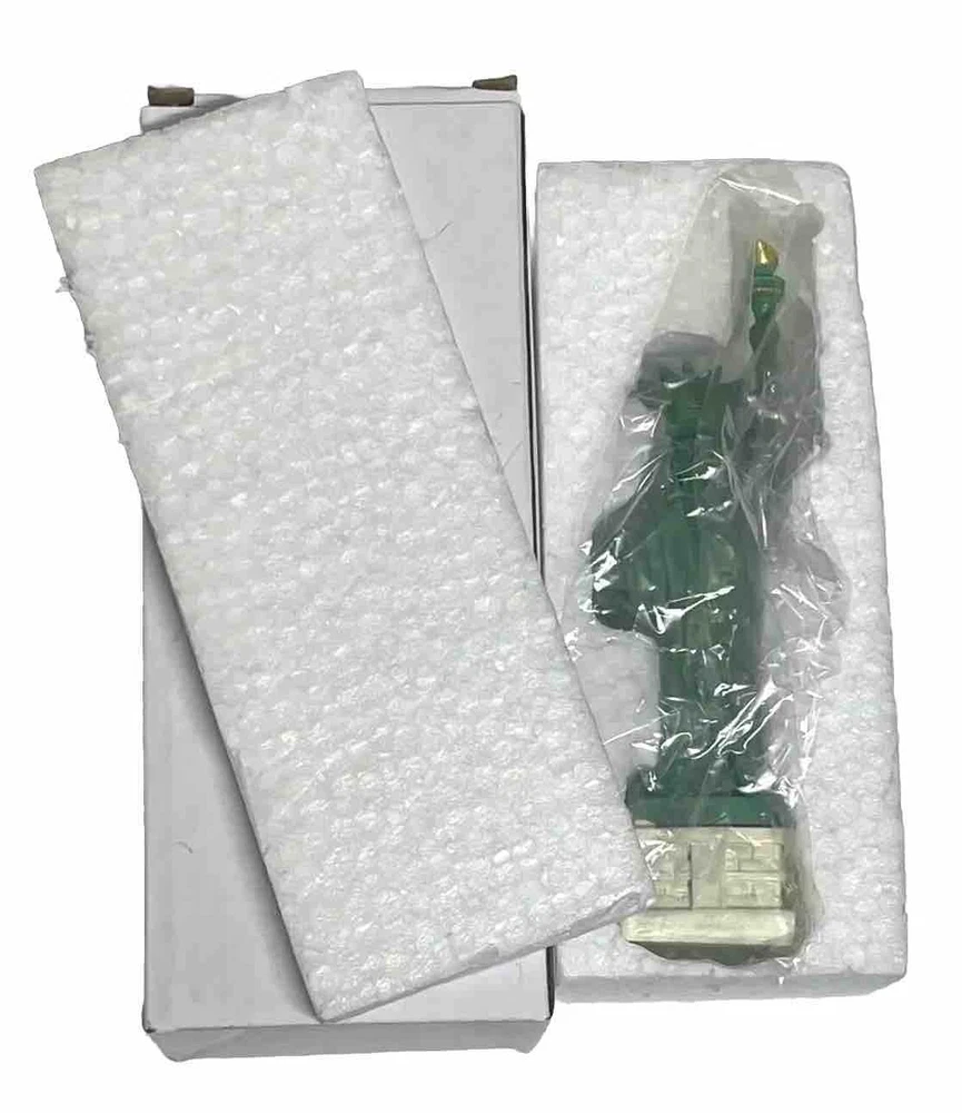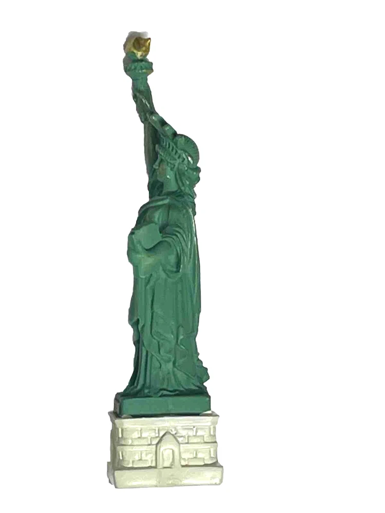 Statue of Liberty With New York City Skyline Base Replica, Figurine. Roughly high 5 inch. Roughly weight without box 2.3 oz. 5 inch high from base to top of torch. Thick molded poly resin construction. Ship out With a Foam Box. Great NYC Souvenirs gifts!!