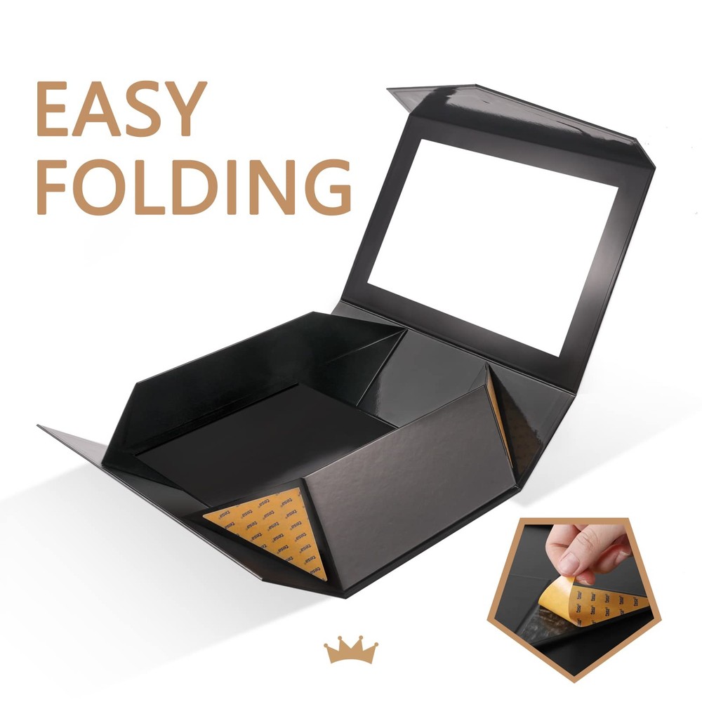 These gift boxes are absolutely stunning! The sleek black design with a clear window makes presents look extra special, and the included ribbon adds a perfect finishing touch. They’re super sturdy and spacious, fitting larger items easily while keeping everything secure. The quality feels premium, and the dimensions are just right for a luxurious unboxing experience. Love that they come with matching cards too—such a thoughtful detail! Perfect for birthdays, weddings, or any occasion where you want to impress. Highly recommend!