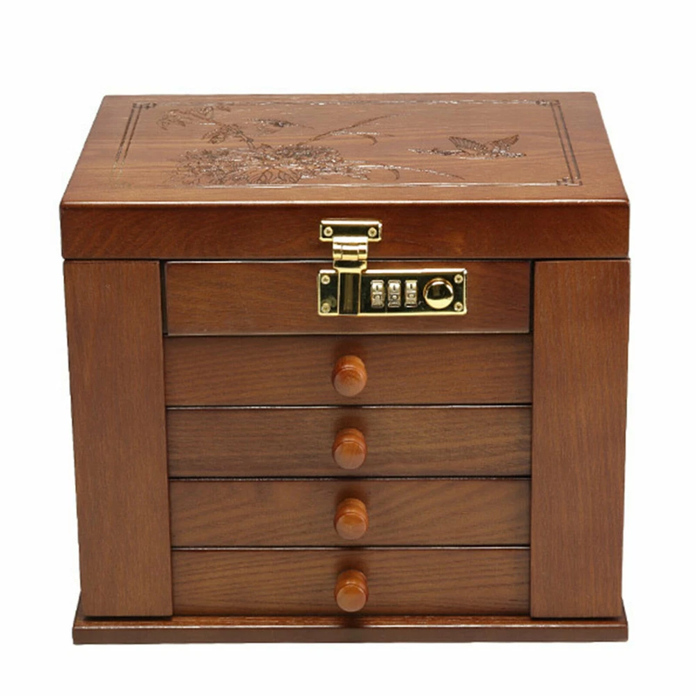 Specifications: Colors: Brown Layer: 5 layers+2 swing-out cabinets Types: with mirror Material: MDF+Wooden Lock: password lock Carved: with exquisite carvings Sizes: (Length x Width x Height) Size: about 27.5x19.1x22.9cm / 10.82x7.51x9.01inch Weight:2.8kg Package included: 1 x Wooden Jewellery Box 5 Layers 4 Drawers Vintage Jewelry Organizer Wooden Storage Box Jewelry Case Feature: [Elegant and Durable] Made of Durable and High-quality Solid Wood and Mdf with Veneer and Painting, Which Makes You Enjoy All the Functions of Storage Box. Because Many Compartments and Functional Parts Are Folded and Stored Together, a Lot of Space Is Saved. [Velvet Interior] the Drawers and Compartments Are Lined with Soft Velvet Material, Which Can Ensure That Your Jewelry Is Not Affected by Scratches or Dents, so That You Can Safely Store Your Jewelry. [Large Capacity Jewelry Box] This Box Includes a Built-in Mirror, 4 Removable Drawers and 2 Swing-out Cabinets, with 17 Compartments, 6 Necklace Hooks, 21 Ring Slots and 1 Storage Ledge on Each Side. [Safe Lock] the Lid Is Designed to Lock All Drawers and Cabinets Firmly to Protect Your Rings, Earrings, Necklaces, Bracelets, Watches and Other Jewelry Accessories. [Meaningful Gift] Beautiful Appearance and Practical Function, Safety Lock with Key Adds Elegance and Security. Ideal Gift for Valentine's Day, Mother's Day, Thanksgiving, Christmas, Birthdays and Weddings. (Note: Watches and Jewelry Are Not Included.) Specifications: Colors: Brown Layer: 5 Layers+2 Swing-out Cabinets Types: with Mirror Material: Mdf+Wooden Lock: Password Lock Carved: with Exquisite Carvings Sizes: (Length X Width X Height) Size: About 27.5x19.1x22.9cm / 10.82x7.51x9.01inch Weight:2.8kg Package Included: 1 X Wooden Jewellery Box Tips:Initial Password Is 000. Payment Delivery details Terms of sales About us Contact us Payment We accept ebay payment 。 Fees such as import duties, taxes are not included in the item price or shipping costs. These charges are the buyer's responsibility. Delivery details Shipping: 2-9 working days to: USA Terms of sales We maintain high standards of excellence and strive for hundred percent customer satisfaction. Feedback is very important to us. We hope that you contact us immediately before you give neutral or negative feedback, so that we can address your concerns. It is impossible to address issues if we do not know about them! About us Your satis faction is our ultimate goal. We work hard to earn your trust and future business. Our certified technicians have tested each item before shipping. The unit comes with 1 year limited warranty on all manufacturing defects. a) If you receive a defective item, you may return it or ask for a discount. Please contact us within 14 days after you receive the package. b) What you returned must be intact and in its original packaging as re? u. Customer is responsible for shipping costs of the returned item. c) We will cover the cost of shipping back t with the shipping rate indicated in the registration page. We will send you a new unit or refund the full payment you paid. Thank you. Contact us Business Hour Business Hour: Monday To Friday: 8:30 AM to 5:00 PM (Beijing China time) Due to time zones, our reply to your questions may not be immediately. But within above working time, we will reply your email within 24 hours. If it's non-workdays, please kindly be patient and wait till Monday. Please contact us with ebay message. Please feel free to contact us if you have any questions. Monday To Friday: 8:30 AM to 5:00 PM (Beijing China time) Due to time zones, our reply to your questions may not be immediately. But within above working time, we will reply your email within 24 hours. If it's non-workdays, please kindly be patient and wait till Monday. Please contact us with ebay message. Please feel free to contact us if you have any questions.