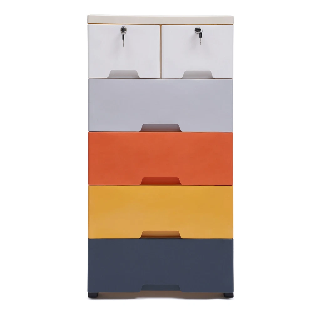 5 Layers Lockable Dresser Organizer 6 Chest Drawers Colorful Storage Cabinet