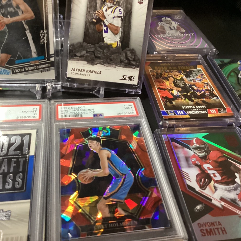 The product is a mystery sports card lot containing 5 cards from the 2020 Panini Prizm set featuring basketball players such as Stephen Curry, LeBron James, and Kevin Durant. The cards are from the 2023 NBA season and are manufactured by Panini. Each lot is valued between $5 and $40, with no base cards included. This offering caters to sports trading card collectors looking for a mix of high-value cards from top NBA athletes in the 2023 season.