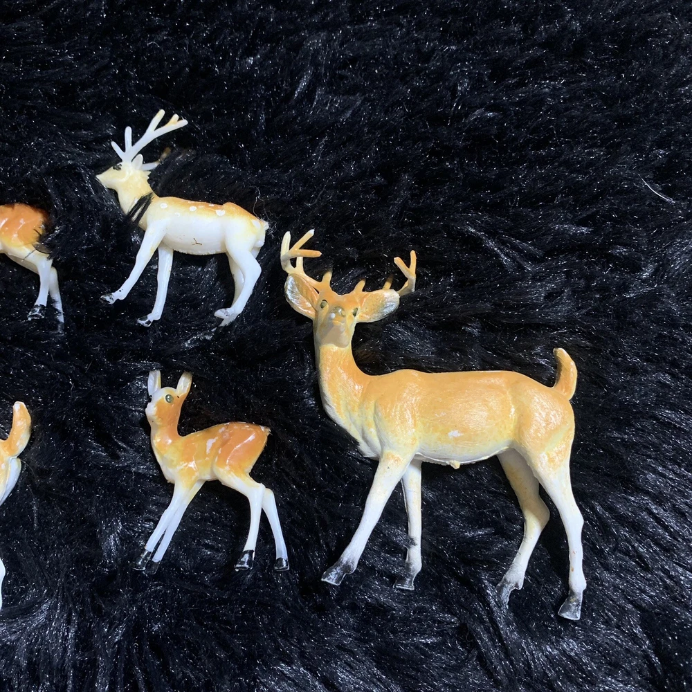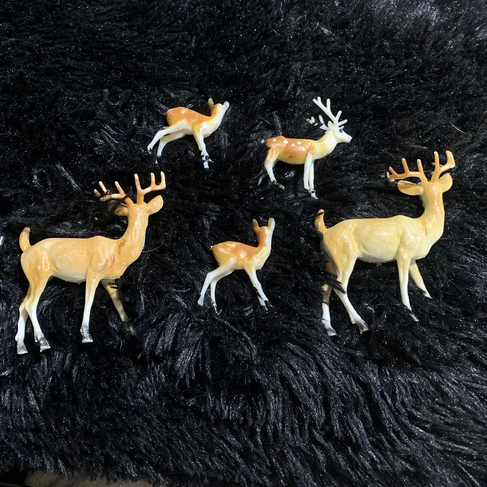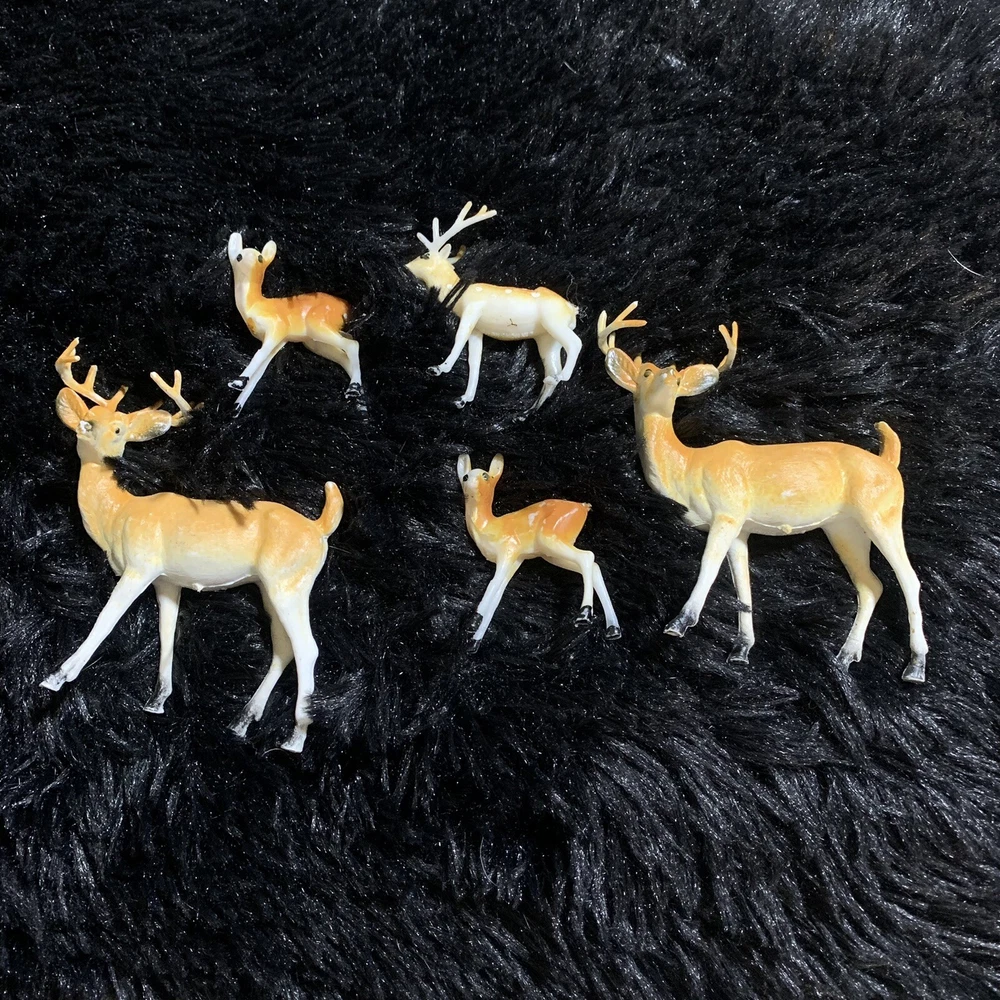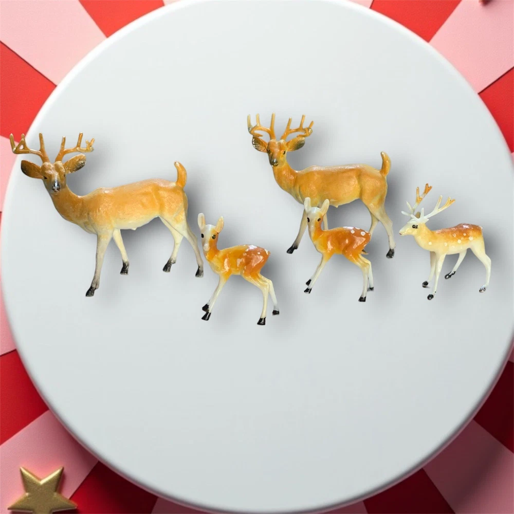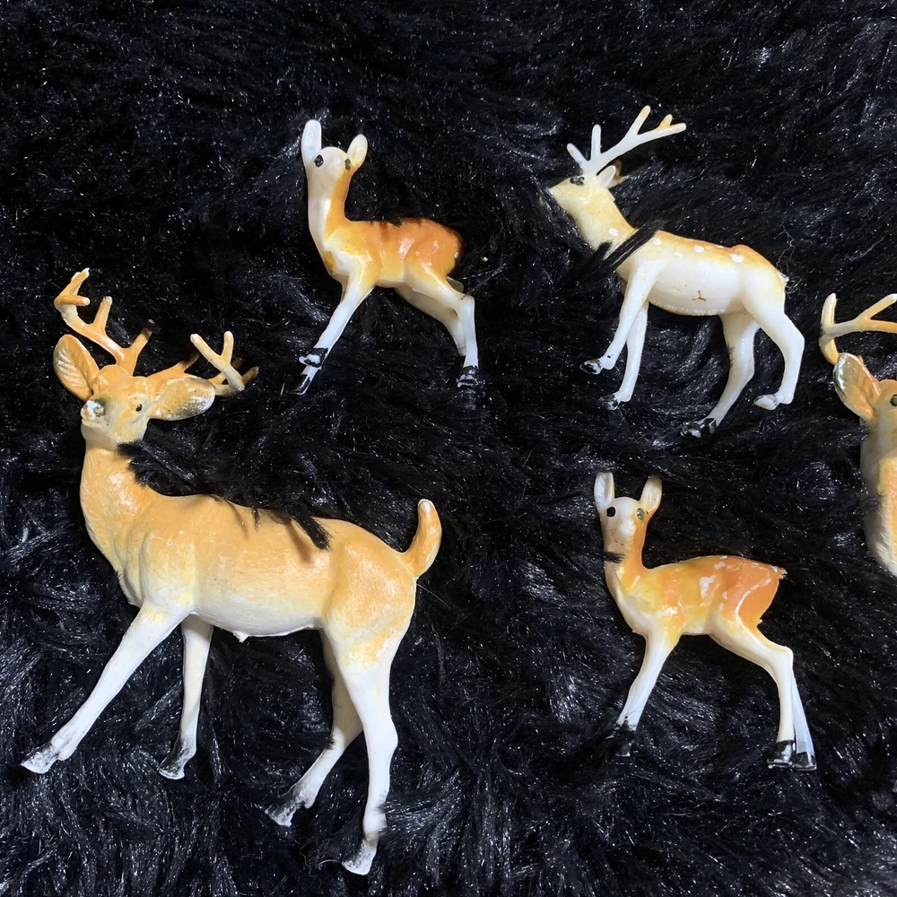 Add a touch of vintage charm to your festive decor with this delightful set of five miniature plastic reindeer. Each figurine showcases a different stage of a fawn's life, ranging in size and detail, creating a whimsical display that captures the magic of Christmas. The colorful animal print pattern and painted finish bring these tiny creatures to life, perfect for brightening up any space. Crafted from durable plastic, these unboxed figurines are a nod to the festive seasons of the past. They're ideal for collectors and holiday enthusiasts alike, ready to be placed on your mantle, nestled within your seasonal village, or dotted around your festive table to add an air of playful sophistication. Celebrate the joy of the holiday season with these enchanting reindeer companions. I'm not a collector or expert so please see all photos for condition and let me know if you have any questions or need any more photographs. Due to the reason of light and the display, you can see the picture may have a slight color difference, this is inevitable, please understand. Please review images to make your judgment on cosmetic condition which I believe is a matter of personal opinion. You will get what you see. The photos will overrule the listing title or descriptions if there is any discrepancy.