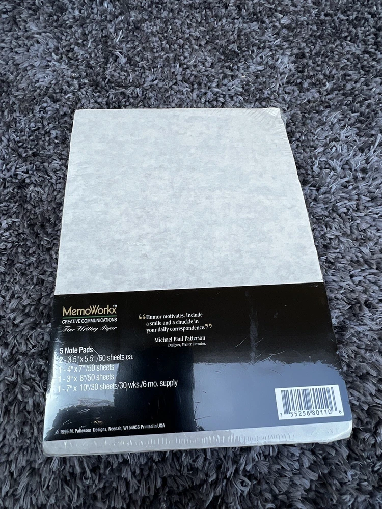 Get organized with this set of 5 MemoWorkx note pads! Perfect for your home or office, each pad is designed for a specific purpose. Keep track of your to-do list, shopping list, phone messages, and weekly schedule. With a traditional style and high-quality paper, these note pads will look great on any desk or countertop. Whether you're a busy parent or a professional, these MemoWorkx note pads are a must-have for staying on top of your daily tasks. Bin F14. 8-21-23