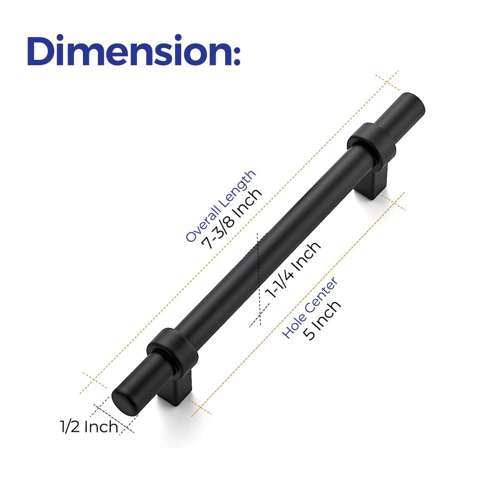$ 26.5210 Pack 5-Inch Matte Black Cabinet Handles 7-3/8-Inch Length Kitchen Hardware