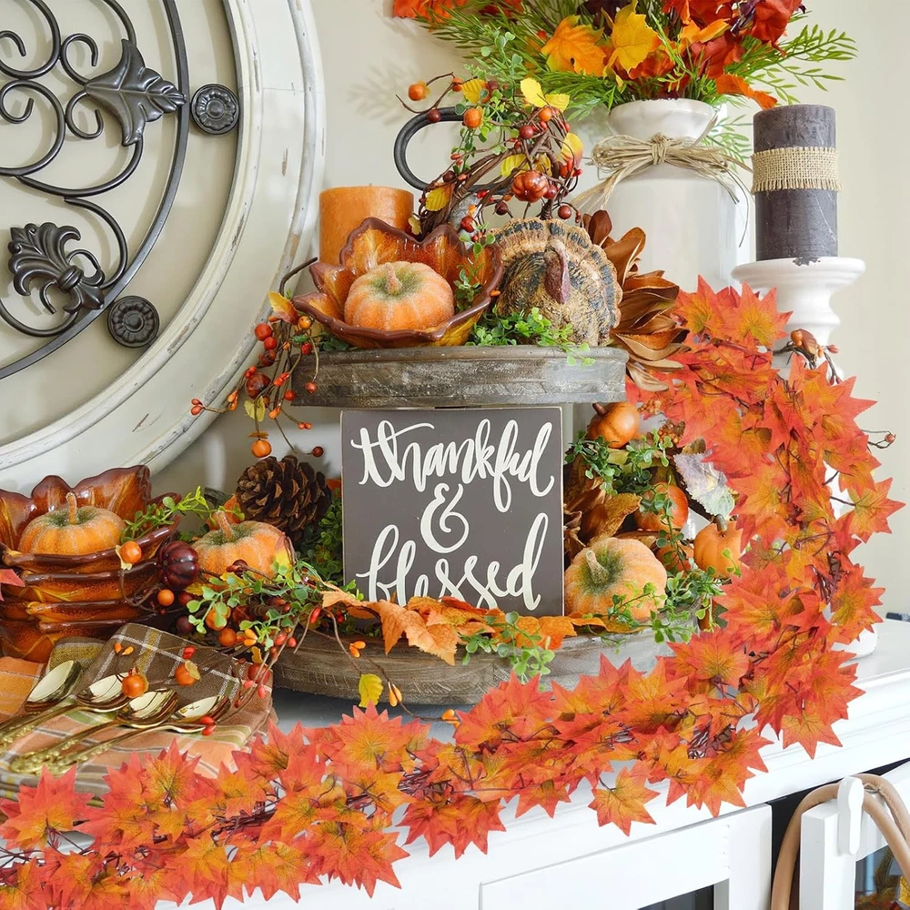 $ 17.953 Pack 5.9Ft Fall Maple Leaf Garland Orange Autumn Decor