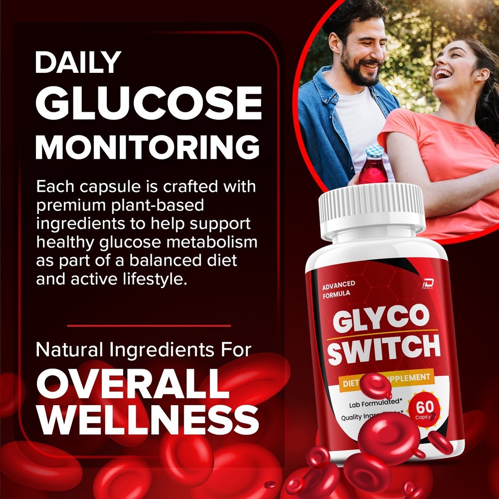 The Glyco Switch Capsules by Avenura are designed to support glycogen levels with a natural blend of active ingredients such as Turmeric, Prickly Pear, Chinese Cinnamon, and Bark. These capsules are formulated for blood and circulatory health, making them suitable for adult unisex use. Made in the United States, this all-natural product contains 60 pills in each pack, with an unflavored taste for easy consumption. Glyco Switch Support Stable Health Levels: Enhance your well-being with Glyco Switch. Natural Dietary Supplement: Embrace the power of nature, a supplement crafted that may support your health and wellness journey. GlycoSwitch Support: A blend of natural ingredients designed that may maintain your Healthy levels. Glyco Switch Capsule Convenient Daily Use: Simplify your routine with Glyco Switch capsules. Advanced Formula: Experience the benefits of advanced formula, designed to provide comprehensive support for optimal health