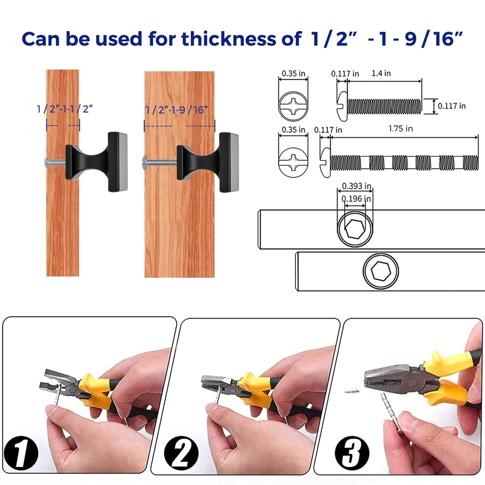 12PCS Silver T-Shaped Cabinet Knobs with Screws for Kitchen Cabinets