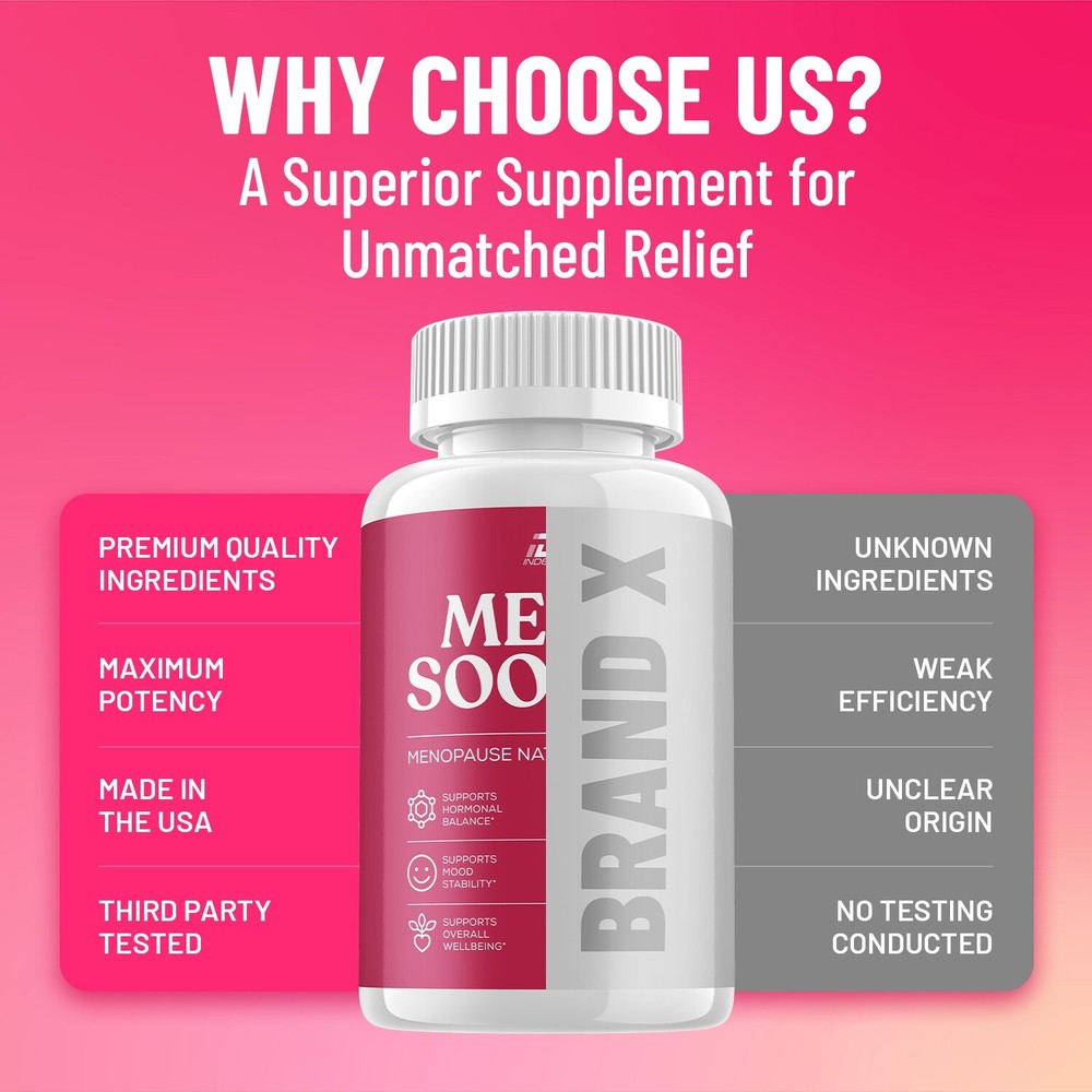 Discover MenoSoothe Capsules a carefully formulated all natural ingredients daily supplement. Meno Soothe Wellness Formula: Crafted to complement a healthy routine, MenoSoothe Capsules designed for women natural support MenoSoothe All-Natural Formula: Made with carefully selected natural ingredients. MenoSoothe Balanced Lifestyle: Stay active and maintain a sense of balance in your daily routine Meno Soothe for Daily Use: Convenient and simple to incorporate into your daily routine, these capsules are designed for hassle-free use. MenoSoothe Promotes Well-Being: Meno Soothe may help maintain a healthy lifestyle.