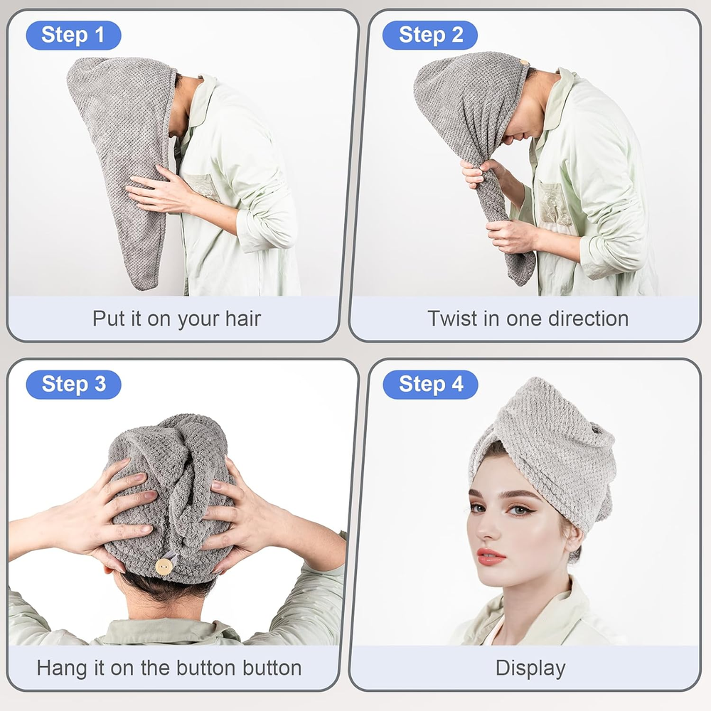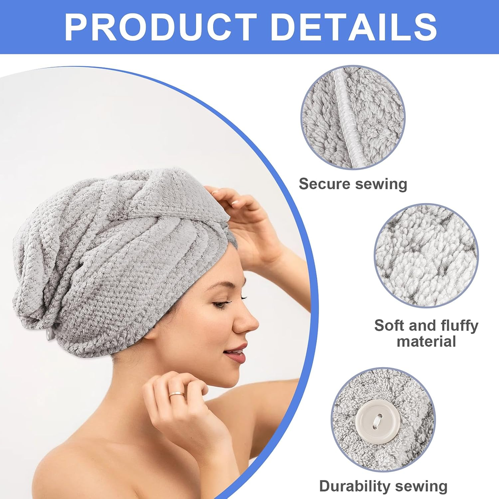 These microfiber hair towels are a game-changer! Super soft, absorbent, and the perfect size for wrapping wet hair. The 5-pack offers great variety, and they dry hair quickly without frizz. Love how lightweight and comfortable they feel—definitely a must-have for anyone with long or curly hair. Fast shipping and great quality!