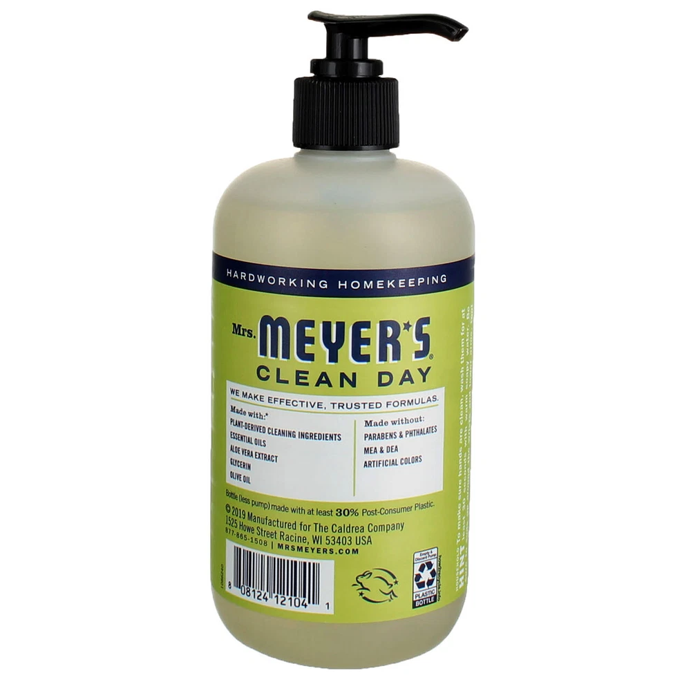 Product Description Mrs. Meyer's Clean Day hand soaps are specifically made to clean and freshen hands without drying, while also providing a special, singular scent for your entire home. Lemon verbena scented soap has a light, refreshingly mild citrus scent. This tender herb blossoms in early summer and smells bright and new through and through. This hard-working hand soap formula contains olive oil, aloe vera, and essential oils, that clean and freshen hands. These thoughtfully chosen ingredients create a non-drying yet softening soap for busy hands. Made without parabens, phthalates, animal-derived ingredients, and always a cruelty free soap. Also available in other garden inspired scents and products such as body lotions, laundry detergents, candles, and so much more! Mrs. Meyer's - rooted in goodness. DIRECTIONS FOR USE: Moisten your hands, then add a pump of Mrs. Meyer's Clean Day Liquid Hand Soap. The longer you rub your hands, the cleaner they become. Uses: Hands, body and bath. Hard-working, non-drying soap for busy hands Hand soap made with essential oils, aloe vera, olive oil, and other thoughtfully chosen ingredients Garden-fresh lemon verbena hand soap has a light, refreshingly mild citrus scent Thoughtfully chosen ingredients with no parabens, phthalates , or artificial colors At least 98% naturally derived Cruelty-free, never tested on animals Biodegradable Hard-working, non-drying Lemon Verbena scented soap for busy hands Ingredients Water, Cocamidopropyl Hydroxysultaine, Sodium Methyl 2-Sulfolaurate, Glycerin, Citrus Limon (Lemon) Peel Oil, Abies Alba (Fir) Leaf Oil, Cymbopogon Schoenanthus (Lemongrass) Oil, Fragrance, Disodium 2-Sulfolaurate, Olea Europaea (Olive) Fruit Oil, Aloe Barbadensis Leaf Juice, Citric Acid, Sodium Chloride, Potassium Sorbate, Sodium Benzoate. Product Description Mrs. Meyer's Clean Day hand soaps are specifically made to clean and freshen hands without drying, while also providing a special, singular scent for your entire home. Lemon verbena scented soap has a light, refreshingly mild citrus scent. This tender herb blossoms in early summer and smells bright and new through and through. This hard-working hand soap formula contains olive oil, aloe vera, and essential oils, that clean and freshen hands. These thoughtfully chosen ingredients create a non-drying yet softening soap for busy hands. Made without parabens, phthalates, animal-derived ingredients, and always a cruelty free soap. Also available in other garden inspired scents and products such as body lotions, laundry detergents, candles, and so much more! Mrs. Meyer's - rooted in goodness. DIRECTIONS FOR USE: Moisten your hands, then add a pump of Mrs. Meyer's Clean Day Liquid Hand Soap. The longer you rub your hands, the cleaner they become. Uses: Hands, body and bath. Hard-working, non-drying soap for busy hands Hand soap made with essential oils, aloe vera, olive oil, and other thoughtfully chosen ingredients Garden-fresh lemon verbena hand soap has a light, refreshingly mild citrus scent Thoughtfully chosen ingredients with no parabens, phthalates , or artificial colors At least 98% naturally derived Cruelty-free, never tested on animals Biodegradable Hard-working, non-drying Lemon Verbena scented soap for busy hands Ingredients Water, Cocamidopropyl Hydroxysultaine, Sodium Methyl 2-Sulfolaurate, Glycerin, Citrus Limon (Lemon) Peel Oil, Abies Alba (Fir) Leaf Oil, Cymbopogon Schoenanthus (Lemongrass) Oil, Fragrance, Disodium 2-Sulfolaurate, Olea Europaea (Olive) Fruit Oil, Aloe Barbadensis Leaf Juice, Citric Acid, Sodium Chloride, Potassium Sorbate, Sodium Benzoate. Warnings Common Sense Caution: Avoid eye contact. Keep out of reach of children. Disclaimer The product descriptions and instructions provided by vitabox.com are for informational purposes only and are qualified in their entirety by the information available from manufacturers of the products. You should carefully read all product packaging, and contact the manufacturer with any questions before using a product. While we endeavor to ensure that product descriptions are current, manufacturers sometimes change their products. We are not liable for inaccuracies or misstatements about products. We do not provide medical advice or recommendations. You should not use the information provided by vitabox.com for diagnosing or treating a health problem or disease. If you have or suspect that you have a medical problem, immediately contact your health care provider. Information and statements regarding dietary supplements have not been evaluated by the Food and Drug Administration or any other government agency and are not intended to diagnose, treat, cure, or prevent any disease.