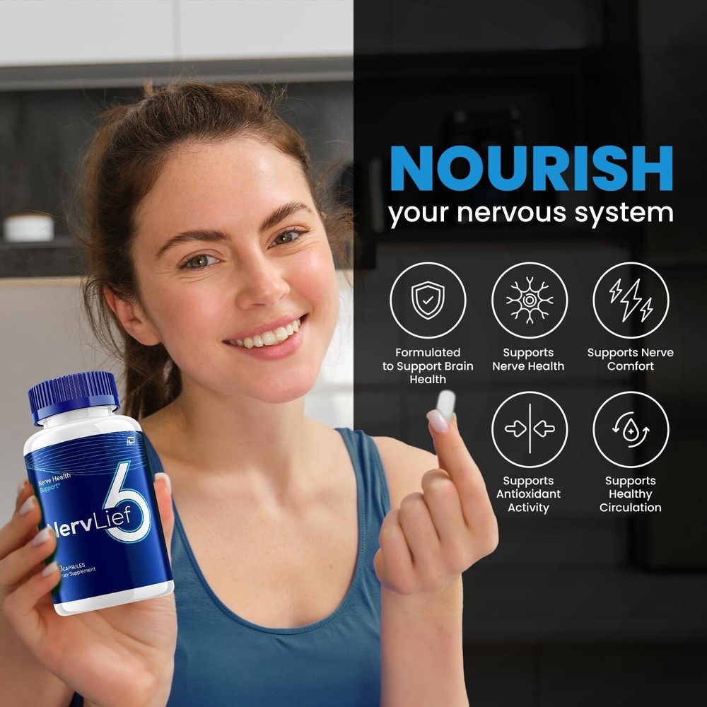 The Nervlief 6 Capsules are a natural blend formulated to support blood formation and blood sugar levels. Made with ingredients such as olive leaf, turmeric, and holy basil, these capsules provide glycogen support for adults of any gender. With a dose of 60 capsules, this natural formulation is designed to help maintain healthy blood sugar levels and overall well-being. Made in the United States, these unflavored capsules offer a convenient way to support blood health with a blend of herbal and nutritional ingredients. Nervlief 6 Support Stable Health Levels: Enhance your well-being, formulated that may help maintain steady and healthy levels for overall support. Natural Dietary Supplement: Embrace the power of nature, a supplement crafted that may support your health and wellness journey. Nervlief 6 Support: A blend of natural ingredients designed that may maintain your Healthy levels. Nervlief 6 Capsule Convenient Daily Use: Simplify your routine with Nervlief 6 capsules. Advanced Formula: Experience the benefits of advanced formula, designed to provide comprehensive support for optimal health.
