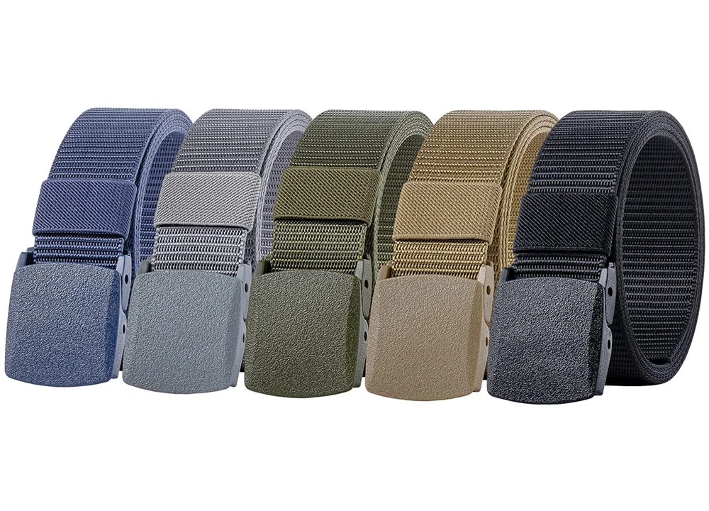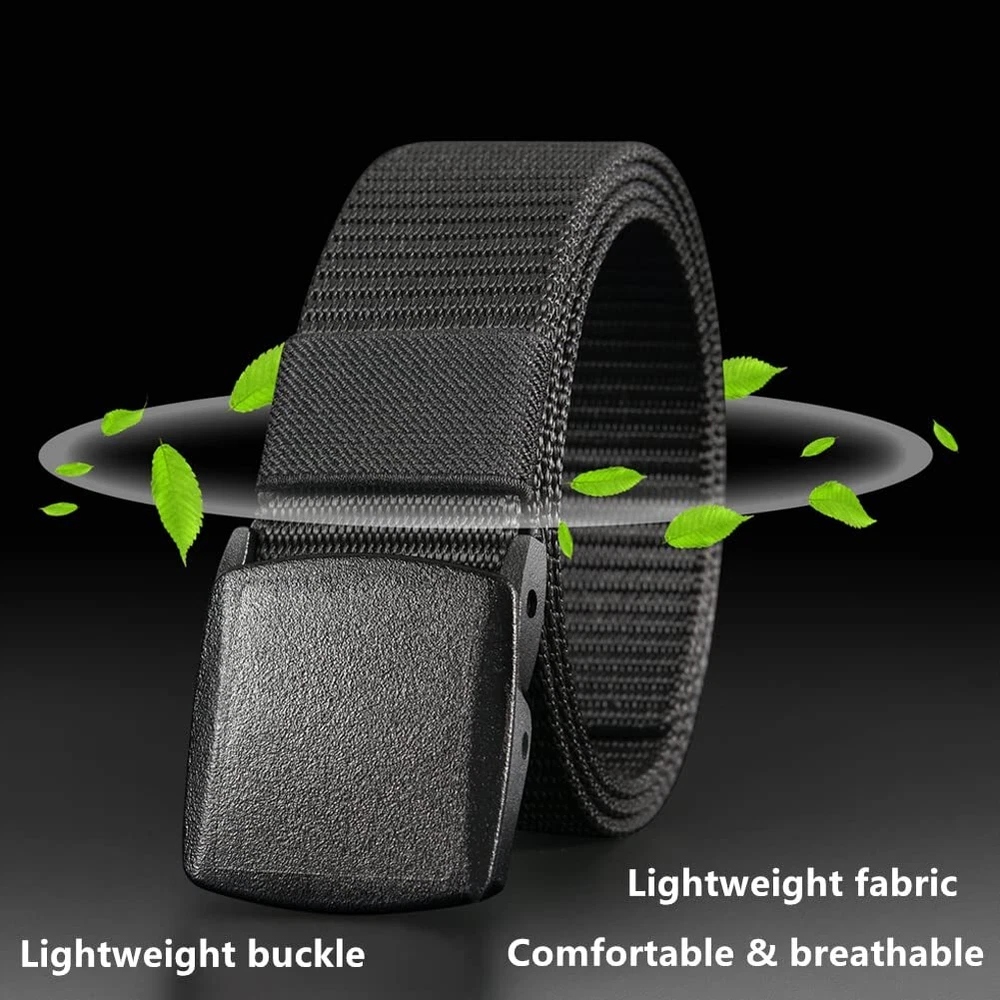 Superior Material: -International standard buckle, Without any metal, anti-allergic. -Durable, high strength, breathable 1000D nylon webbing with 1100lb/500kg tensile strength. Lightweight And Durable Belts strap made of strong and durable Nylon, supply more relaxed, lightweight belts for you. Our products have been tested to ensure a two-three-year lifetime using in the normal circumstances. Packing list: 1 x Black Tactical Belt 1 x Tan Tactical Belt 1 x Camo Tactical Belt 1 x Blue Tactical Belt 1 x Grey Tactical Belt QUALITY NYLON BELT: One purchase for 5 pack nylon belts. Premium nylon webbing, lightweight, soft, flexible, sturdy and durability, sweat absorption and dry fast. Suitable for daily wearing with all pants, and outdoor heavy duty work or sports. NON-METAL BELT: Well-designed nylon web belt with YKK plastic buckle. Travel-friendly Non-Metal construction, Nickel Free, Non-Allergic. Allow you to be able to go through a metal detector or airport security without having to take it off. MILITARY TACTICAL BELT: Strong enough to withstand 500Kg weight no deformation. Ideal for police, firefighters, CCW, security guards, electricians and utility workers in need of a great duty belt to carry tools or weapons. Also great for paintball and airsoft gear! ADJUSTABLE WEBBING BELT: 100% Nylon web belt,Width:1.5”(3.8cm), Length:47”(120cm). Holeless design belt and removable buckles allow you to trim the extra length if it is too large for you. Perfect custom belt for your family. NICE GIFT BELT: This unisex nylon web belt is a good gift for your friend and relatives in Thanksgiving Day, Christmas Day.