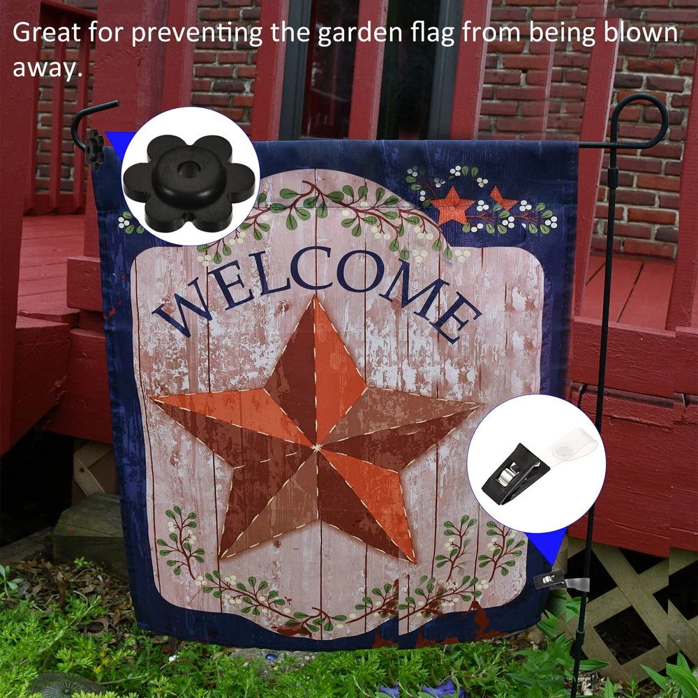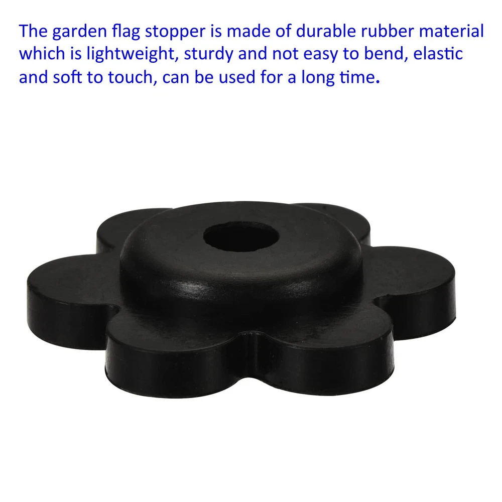 APPLICATION RANGE: The garden flag stoppers are used to prevent flags from falling off the stand, keeping your garden flag in place out of doors. DURABLE DESIGN: 1. The garden flag stopper is made of durable rubber material which is lightweight, sturdy and not easy to bend, elastic and soft to touch, can be used for a long time; 2. These garden stoppers are features with flower shape, attractive and practical, fit flag poles of various sizes, keeping your garden flag from getting lost. PACKAGE INCLUDE: 5 Pack of Black Garden Flag Stoppers, which overall size is 31 mm x 5.8 mm / 1.2" x 0.2" (Max Outer Dia*Hole Dia). NEED ATTENTION: Please confirm the diameter of the stand rod and select the right size of the stopper. APPLICATION RANGE: The garden flag stoppers are used to prevent flags from falling off the stand, keeping your garden flag in place out of doors. DURABLE DESIGN: 1. The garden flag stopper is made of durable rubber material which is lightweight, sturdy and not easy to bend, elastic and soft to touch, can be used for a long time; 2. These garden stoppers are features with flower shape, attractive and practical, fit flag poles of various sizes, keeping your garden flag from getting lost. FUNCTIONAL TOOLS: The garden flag stoppers can hold your flags firmly. PACKAGE INCLUDE: 5 Pack of Black Garden Flag Stoppers, which overall size is 31 mm x 5.8 mm / 1.2" x 0.2" (Max Outer Dia*Hole Dia). NEED ATTENTION: Please confirm the size before purchase according to your need.