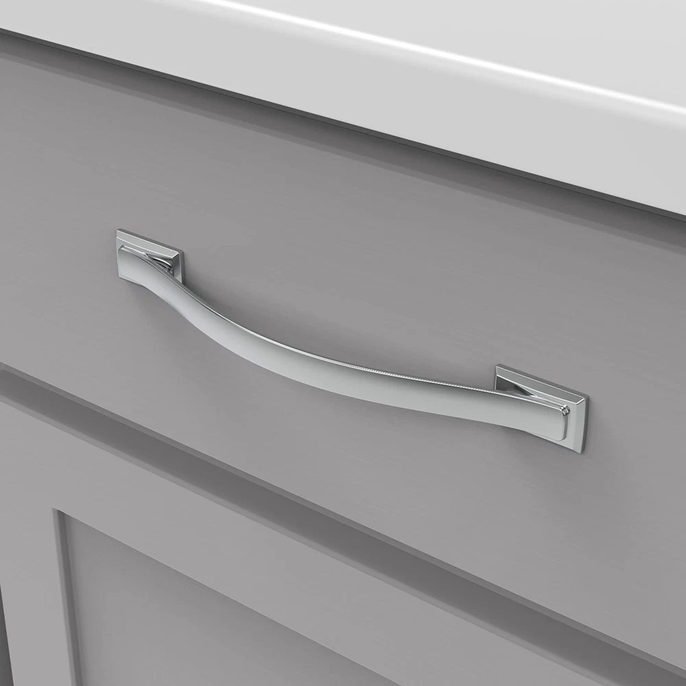 The ® Dover collection showcases classic detailing, designed to compliment timeless kitchens. An easy touch of elegance that warms the heart of the home. Available in popular finishes, this hardware is an effortless accent to transitional and traditional spaces. Center to Center: 6-5/16 Inch (160mm), Length: 8-1/2 Inch, Width: 7/8 Inch, Projection: 1-1/8 Inch The Chrome finish coordinates best with other chrome or reflective silver finishes. This finish is is a cool silver tone and overall very reflective. Since it is durable on its own, it does not require a separate protective coating. Refined and classical detailing make the Dover collection a timeless design that is the perfect accent to any space. Satin Nickel and Chrome provide a neutral sparkle; while Matte Black and Brushed Golden Brass create a look that is more bold and sophisticated. This collection is a trendy update for transitional spaces All essential mounting hardware included for an effortless installation.