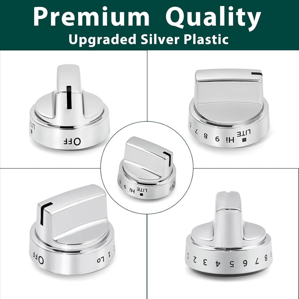5Pack Stainless Steel Control Knob Compatible with GE Gas Range Stove WB03X24818