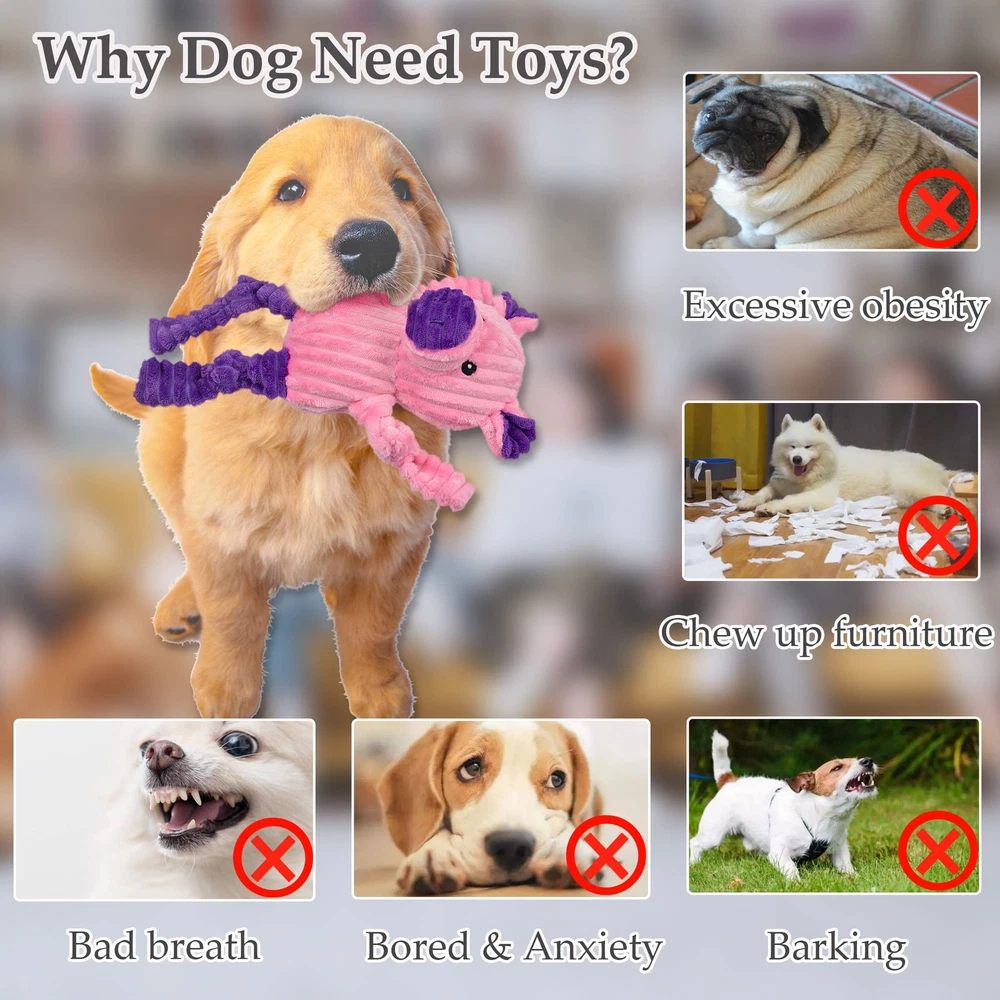 VALUE-PACK DOG TOYS: Our bundle includes five of the most popular stuffed dog toys - fox, duck, pig, frog, and elephant - suitable for small, medium, or large dogs; Get five high-quality dog toys in bundle DOG SQUEAK TOYS: Each plush toy has a built-in squeaker to create a sound that dogs love; The vivid animal shapes and colorful color schemes are designed to attract dogs; The soft plush material satisfies their natural chewing instinct SAFETY FIRST: Our dog toys are made with durable and non-materials; We added double layers of fabric to the toys for longer playtime and durability; All seams are reinforced to make the dog toys tougher HOURS OF FUN: Our dog toy set offers a variety of shapes and textures, which will keep dogs engaged and entertained for hours; These dog toys ensure that your pets stay busy and happy, even when you're not at home GET LARGE DOG TOYS WITHOUT WORRIES: We offer 30 days after-sale service with our dog toys; However, we do not recommend our squeaky toys for aggressive chewers as they are not indestructible; We recommend supervised play