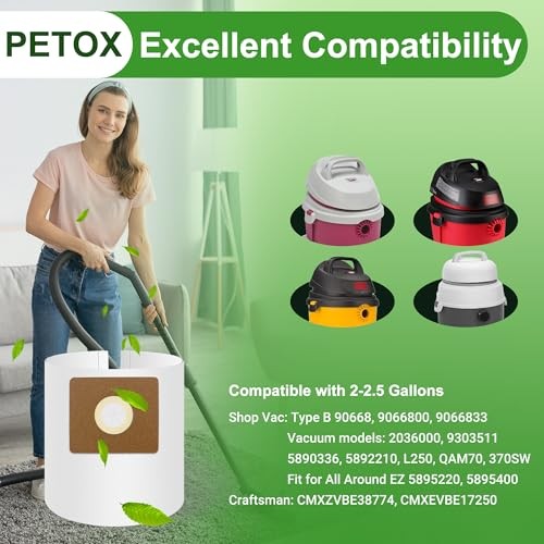USA Stock Free Shipping 1-5 Days Fast Delivery Trusted seller 5 Pack Vacuum Bags Replacement for Shop Vac Bags 2-2.5 Gallon Type B 90668 9066800 9066833, All Around EZ QAM70 and CMXZVBE38774, High-Efficiency Disposable Vaccum Collection Filter Bags Product Description ?????????? ?????? - Compatible with Shop Vac 2-2.5 Gallon Vacuum Bags Type B 9066833. Vacuum Model 2036000, 9303511, 5890336, 5892210, L250, QAM70, 370SW. Fit for All Around EZ 5895220, 5895400 and Craftsman CMXZVBE38774, CMXEVBE17250. Fitting vaccum nozzle attachment of diameter 1-1/2''(3.8cm) ????? ????? - Our original standard 90668 vacuum bags replacement for shop vac are made of premium paper, more solid and sturdy, with higher efficiency to withstand a certain amount of pressure and weight to avoid easy broken. And the collar sealing with rubber effectivly prevent dirt backflow to keep your tank clean. Make clean up easier and just dispose bags when debris full, no secondary pollution of dirt ???? ?????????? - Our tear-resistant 2-2.5 gallon disposable bags for shop vac vacuum easily traps almost fine particles, cold ash and dirt from your home and workshop, reducing indoor/outdoor dirt effectively, keeping the inside of the vacuum clean and improving suction power, promoting better health and well-being for your family ????-????????? ????? - Package includes 5 x 90668 Vacuum Cleaner Filter Bags. We recommended you to change the filter bags when 2/3 full, do not reuse oroverfill as a loss of cleaner suction and/or bag breakage may occur. Dry using only, we also provide other size/gallon vac bags for your vacuum ????????? ?????-????? ??????? - a trusted brand is committed to providing customers with better quality products and more pleasant service. If you have any questions about our products, please feel free to contact us, we are always ready to answer your questions and solve your problem. We stand by our products, and our customers are our focus as a business Shipping Returns Payment Shipping Shipping is FREE to all addresses other than APO/PO boxes in the lower 48 states. All our stock ships from US-based warehouses. Shipped via USPS or UPS (depending on location and package weight) Unless stated otherwise, all orders will ship within 24-72 hours of your payment being processed. Check our feedback to see the great reviews of FAST shipping we offer. Returns Seller does not accept returns Payment We currently accept payment via eBay managed payments only. Once payment is cleared, we will dispatch your shipment within 1-3 business days. Please refer to the "Shipping" tab for more information regarding shipping speed to your destination.