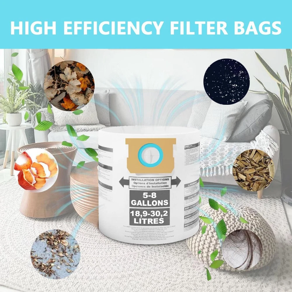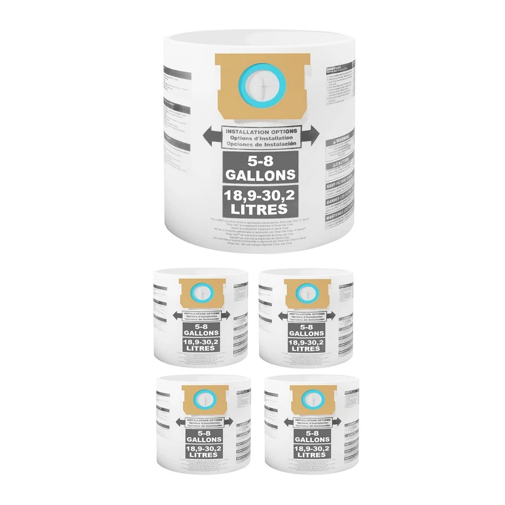 5 Pack Vacuum Cleaner Dust Bags For Shop Vac 5-8 Gallon Vacuum 9066108