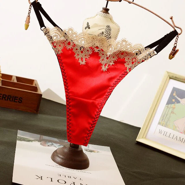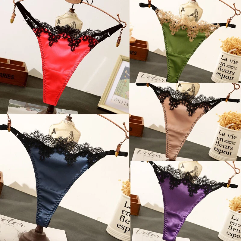 5Pack Lot Sexy Women Satin Panties Underwear Lace G string Thong Bikini Lingerie Product Description Item description *Material: nylon, spandex *Color: solid *Feature: lace trim, t back, high cut, hot *Size: One size fits waist 22''-42'' * What You Get: 5 x Ladies underpants