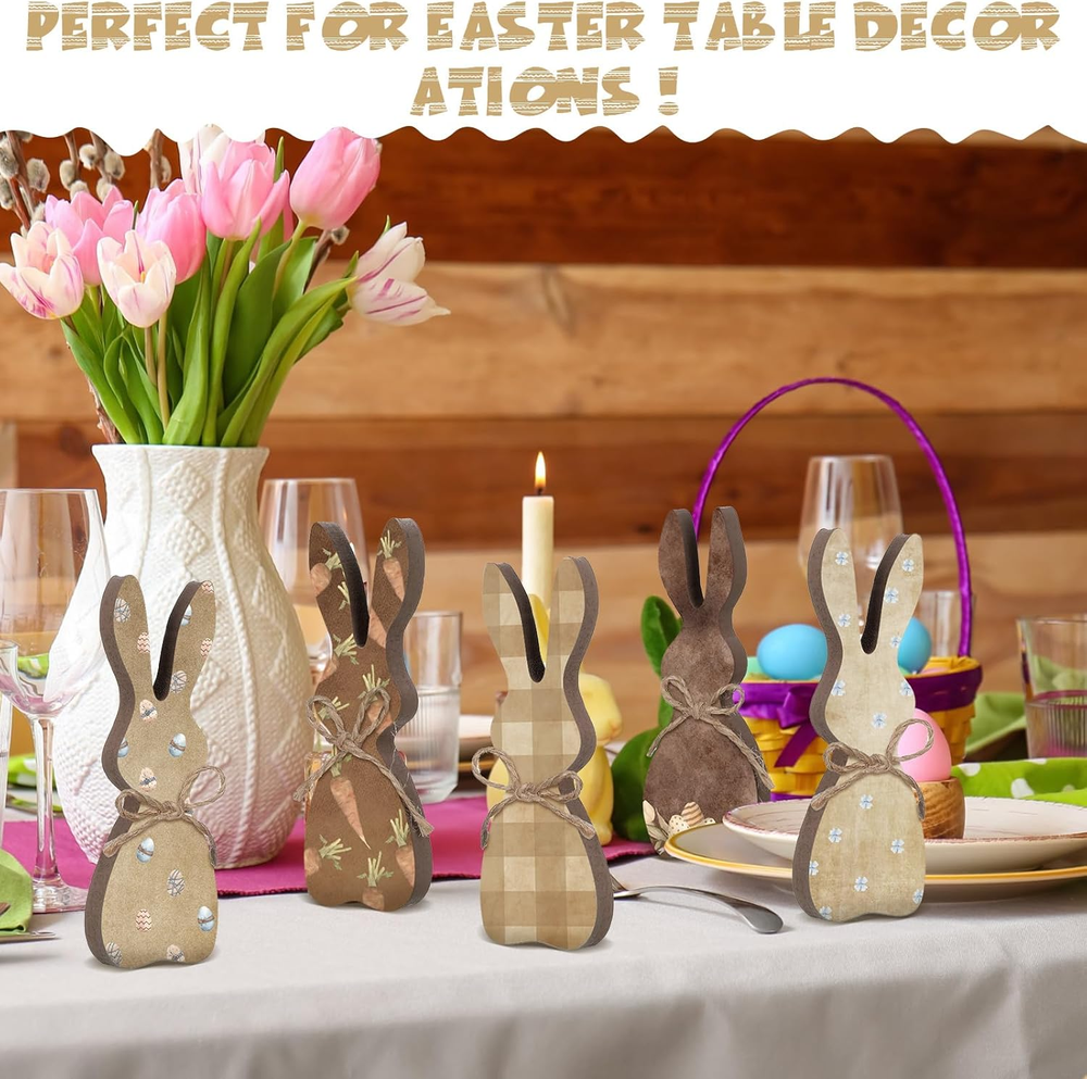 Store New Arrivals Add to Favorite View Feedback Contact Fast deliveries to the customer's home Quality customer service John Make the customers happy! 5 Pcs Easter Bunny Wooden Signs Table Decor Tiered Tray Decor Rustic Rabbit Table Centerpiece Freestanding Gifts for Easter Farmhouse Spring Party(Classic) Description Variety of Signs: the package comes with 5 pieces of Easter bunny decors in the shape of bunnies; Each bunny comes with a piece of string that you can use to tie a bow around the bunny to make it look even more adorable and sophisticated; Spread the joy of spring with fun ears and add a touch of holiday cheer to your party Sturdy and Reliable: our Easter bunny decorations are made of quality wood, hand cut and sanded, have smooth surface without burrs, comfortable to the touch and have nice stability and durability Freestanding Easter Bunny: the rabbit decor measures about 12 cm high, 1.5 cm thick, can stand on its own; It's thick enough to stand firmly and easily on a table, small and delicate enough to be placed on a tray for decoration, also suitable for daily use Creative Easter Gifts: bunnies symbolize the beginning of spring and are the classic element of Easter; Playful wooden signs are ready to hop into your home and make beautiful gifts for family, friends or teachers, bringing them good luck and best wishes; The guest will be very excited to receive a beautiful wooden bunny gift, of course Wide Applications: Easter table centerpieces can be applied as Easter decorations for offices, classrooms, parties, indoor or outdoor events; They can be adorned on Easter tiered trays, shelves, mantles, tables, desks, window sills, Easter centerpieces, etc., and are the nice decorations for indoor or outdoor events, decorating your fresh spring and Easter season Features: Emphasizing the sturdy wooden construction, this Easter bunny decor is designed to last many happy Easters. It is a timeless addition to your spring decor, adding cheer to your household. Its reliable quality ensures it does not wear or tear easily, making it a nice choice for your home decor. Our package includes 5 distinctive Easter bunny decor pieces, each piece well crafted, adding an endearing charm to your spring home decor indoors. These decorations elevate your kitchen table centerpiece, bringing in the joyful spirit of spring and Easter. Specifications: Material: wood Color: as shown in the picture Size: as shown in the picture Package includes: 5 x Rustic Easter decorations for the home Notes: Manual measurement, please allow slight errors on size. The color may exist a slight difference due to different screen displays. Item model number -Tray Decor-25 Item dimensions L x W x H 8.46 x 5.51 x 0.63 inches Material Wood Style Classic Item Weight 5 ounces Shape Rabbit Product Dimensions 8.46 x 5.51 x 0.63 inches Number of Pieces 5 ABOUT US We offer the best prices around on high quality products. Our E-store includes media such as books, movies, music and games while offering electronics, toys, sporting apparel, clothing, tools, general home, garden items and more. SHIPPING We are always working hard to ensure your package arrives as soon as possible. Please understand that some factors like weather, high postal traffic, and the performance of shipping companies are outside of our control. We offer free shipping to the lower 48 states and ship within 2 business days of payment, usually sooner. We do not accept P.O. Boxes. Please provide a physical address. For shipping outside of the continental USA, we only use eBay's Global Shipping Program. The item is shipped to KY and then sent to the rest of the world. International customers are responsible for all duties and taxes. Continue to 'check out' to calculate costs for shipping the item to your country. Messages regarding eBay's Global Shipping Program MUST be directed at eBay EXCLUSIVELY. RETURNS We offer a 30-Day Return Policy on items in which you are not completely satisfied with. You have the option of a full-refund or an exchange of the item. No returns are available on items shipped outside of the USA PAYMENT We accept PayPal. CONTACT US This page content is yet to come Please ad us to your favorite seller and visit again later Thank You CUSTOMER SATISFACTION We try our very best to make sure every customer is completely satisfied. If there's a problem, message us! We're happy to help. WE ACCEPT