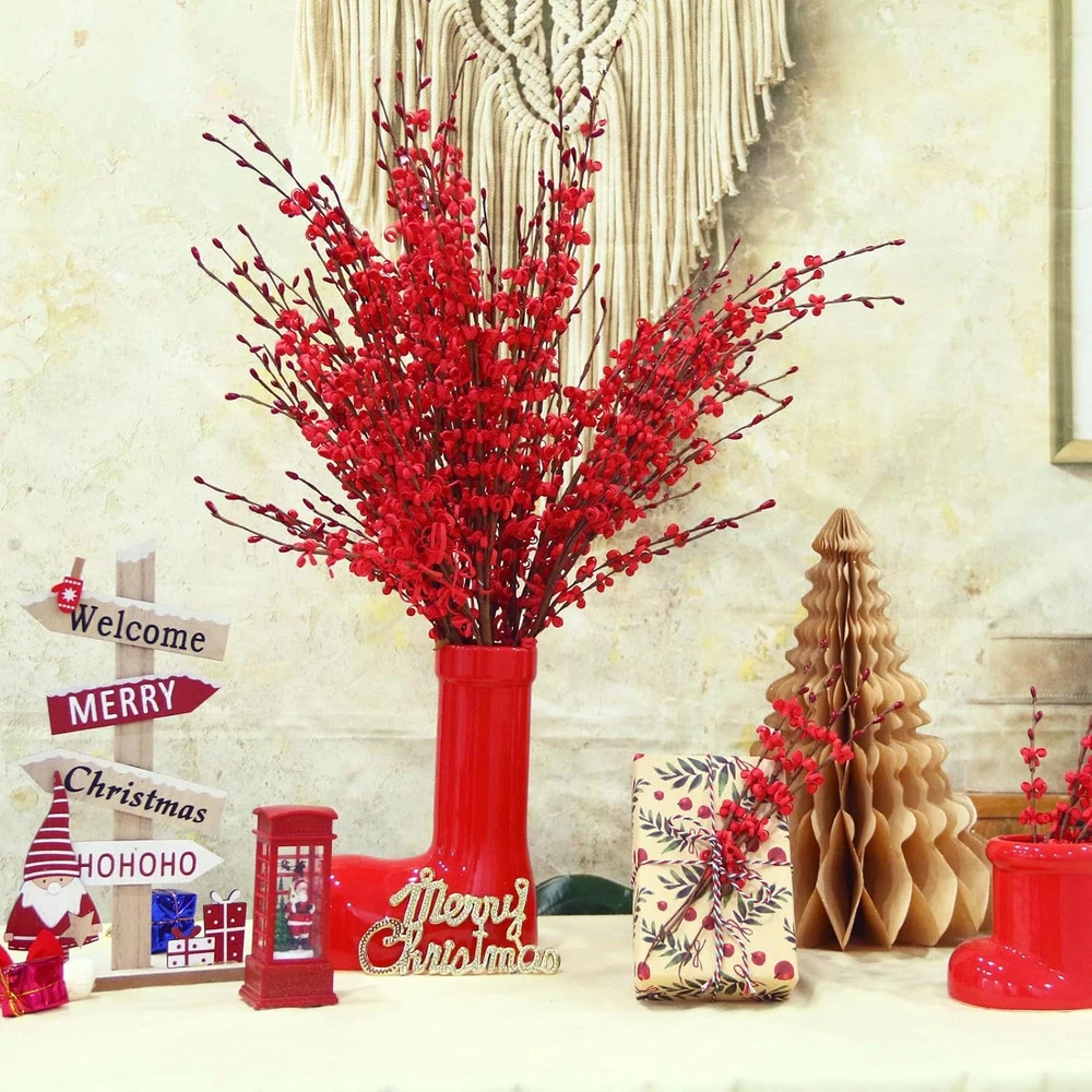 Store New Arrivals Add to Favorite View Feedback Contact Fast deliveries to the customer's home Quality customer service John Make the customers happy! 5 Pcs Jasmine Flowers Artificial Red Flowers 29.5" Long Stems Dry Branches with Mini Red Berry for New Year DIY Floral Art Plant Wedding Home Office Table Decorations Description Lifelike Bouquet: 5pcs red artificial flowers are 29.5 inches tall. Each bundle has 12 flexible stems. Christmas flowers feature unique floral swirls with small red berries at the top of the stems. The attractive hues create multi-colored bouquets perfect for DIY flower arrangements that blend perfectly into your personal décor Unique Material: Our red artificial flowers bulk are made of safety plastic, like foam, soft and fluffy. The stem is made of paper-wrapped iron wire, which can be bent or pruned to your preference without worring about scartching your hands during arrangement Adjustable Length: The stem length of jasmine can be adjusted freely. The red fake flowers can be used in a variety of vase styles. For shorter:can be directly bended and pruned; For longer: can graft branches or put into newspaper in a non transparent vase to increase pad height transparent vase can be decorated with stone, leaves Easy to Care: Our fake christmas flowers require no regular care or pruning. Placing him in a decorative vase or something similar will help bring a Pop of Color. Simply, keep them dry and you have a great addition to help liven things up Wide Applications: Suitable for home red decor for vase or venue decoration like living room, dining table, office, wedding, etc. Suitable for Easter, Mothers Day, Valentines Day floral picks decorations to add a festive atmosphere. Also you can use them for DIY crafts Product Description New Year DIY Floral Arrangement The video showcases the product in use. The video guides you through product setup. The video compares multiple products. The video shows the product being unpacked. Artificial Jasmine Flower for Wreath The video showcases the product in use. The video guides you through product setup. The video compares multiple products. The video shows the product being unpacked. Unleash Your Creativity Can be split into multiple small branches. Give the gift of creativity with a selection of artificial flowers for your DIY-loving friends and family. Get ready to create something beautiful! The video showcases the product in use. The video guides you through product setup. The video compares multiple products. The video shows the product being unpacked. Wootkey Carefully Crafted Jasmines Crafted with meticulous attention to detail, perfect for adding a touch of elegance to any space. Fuller, higher quality jasmine flowers reveal the lasting beauty of a timeless bloom that effortlessly enhances your home décor. Different Colors of Artificial Jasmine Spring has finally arrived in all her glory! In this vibrant spring, decorate your room with colorful jasmine, feel the colorfulness of spring, surround yourself with freshness and elegance, and bring a leisurely and comfortable life mood. Wootkey Carefully Crafted Jasmines Crafted with meticulous attention to detail, perfect for adding a touch of elegance to any space. Fuller, higher quality jasmine flowers reveal the lasting beauty of a timeless bloom that effortlessly enhances your home décor. 1 Dining room decor 2 Bedroom decor 3 Living room decor 4 Table decor Multiple ways to decorate What material is the product made of? Our artificial jasmine flowers are made of plastic, like foam, soft and fluffy. The stem is made of paper-wrapped iron wire which can be bent as you like. Can faux jasmines be used for DIY? Of course. Branches can bend to provide more possibilities for DIY. What's more, you can remove the branches and use them as garlands and so on. What size of vase is suitable for these flowers? The long jasmine artificial flowers are suitable for a vase with a height of around 6-12 inches. The stems can be bent and folded when placed in a short vase, and filler can be added in longer vases. Why are the flowers I received not as straight as in the picture? Flowers are packed in a bent shape for easy transportation. It is normal for the stems to be bent, and you can straighten them to reduce the bend or use a tall vase with a smaller mouth. How can I make these beautiful jasmines fit better in my vase? The branch is about 14.2 inches long. For short vases, you can bend or cut the branches; for large vases, you can fill the vase with newspapers, and for transparent vases, you can use stones and leaves to pad the bottom. Wootkey Artificial Flowers Add to Cart Add to Cart Add to Cart Add to Cart Add to Cart Add to Cart Price $9.99 $ 9 . 99 — $8.99 $ 8 . 99 $9.99 $ 9 . 99 $9.99 $ 9 . 99 $13.99 $ 13 . 99 $9.99 $ 9 . 99 Type Jasmine Jasmine Chinese New Year Red Envelopes Princess Birthday Princess Birthday Orchid Princess Birthday Color White Red Red Royal Blue Lake Blue White/Yellow/Pink/Purple/Blue Gold Count 5/10pcs 10pcs 24pcs 26pcs 26pcs 6pcs 26pcs Material Paper, plastic Paper, plastic Paper Paper Paper Silk Paper Size 29.5'' 17.5'' 2 size mixed / / 38'' / Item model number NBT-001 Unit Count 5 Count Room Type Kitchen, Bathroom, Bedroom, Living Room, Dining Room Seasons All, Winter, Autumn, Summer, Spring Plant or Animal Product Type jasmine Color Red Scent Unscented Material Paper, Plastic Country of Origin China Specific Uses For Product Bouquet, Hotel Decor, Home Decor, Office Decor Item Weight 6.4 ounces Size 5pcs-29.5'' Number of Items 5 Occasion Mother's Day, Christmas, New Year, Wedding, Housewarming Package Information Vase Recommended Uses For Product You could mixed them into different arrangements., The stem length of jasmine can be adjusted freely. Special Feature Fade Resistant, Foldable, Eco-Friendly, Wrinkle Resistant Product Dimensions 12"D x 2"W x 16"H Indoor/Outdoor Usage Indoor ABOUT US We offer the best prices around on high quality products. O