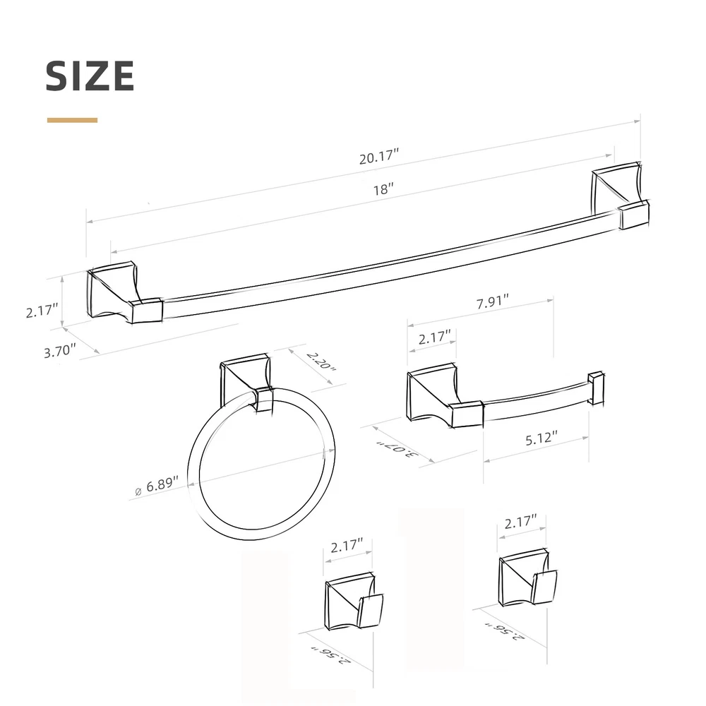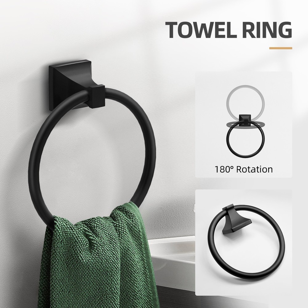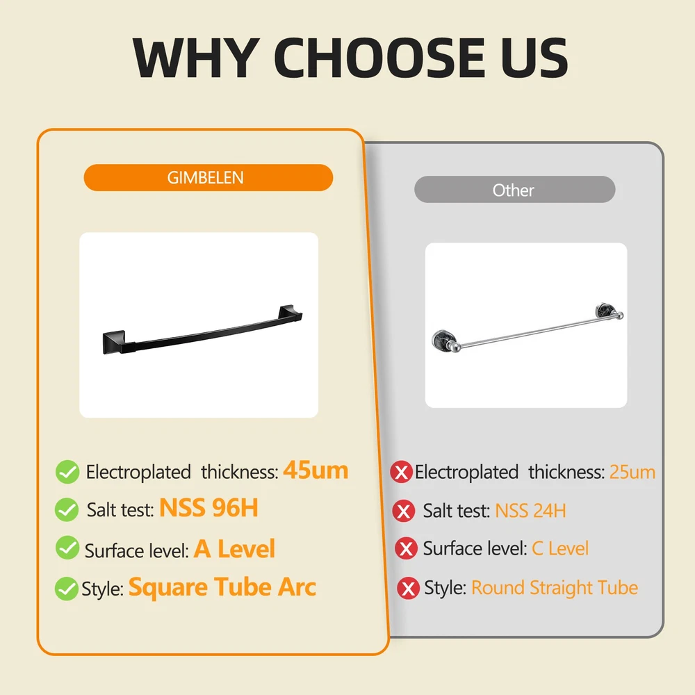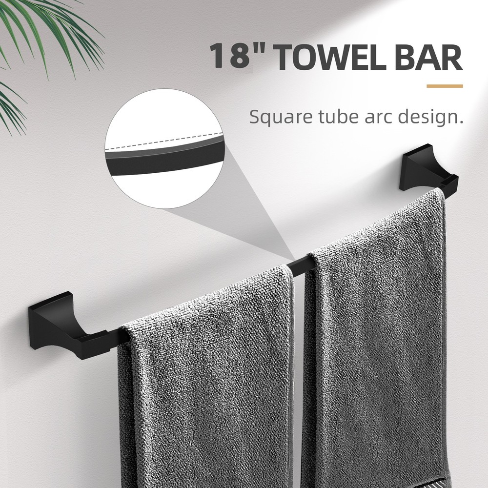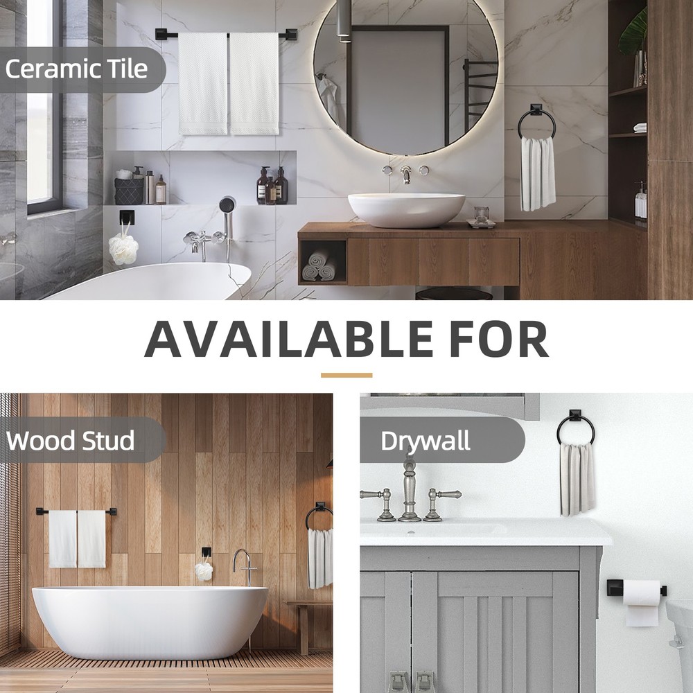 5 Pcs Matte Black Bathroom Hardware Set Wall Mounted Towel Bar Towel Racks Hooks 【5 Pieces Bathroom Hardware Set】 -The bathroom hardware set includes a 18-inch towel bar , a toilet paper holder , a towel ring , two versatile robe hook , Exquisitely packaged in a gift box, suitable for personal use or as a gift. Versatile set for effortless bathroom remodeling. 【Sturdy & Durable】 - 5 pieces bathroom accessories set are made of durable zinc alloy with matte black surface, high strength, toughness, durable and rust-proof, lightweight but sturdy. With maximum weight capacities ranging from 11 to 22 lbs (5-10kg), this set provides sturdy support for your towels and bathroom essentials. 【Modern Design】 - Upgrade your bathroom with this matte black bathroom accessories set. The unique matte black curved square tube design adds a modern touch to your bathroom. The hidden screw design enhances the overall fashion and tidiness of your bathroom, bedroom, and kitchen. It's an easy and affordable way to jazz up a bathroom. 【Easy Installation】 - Installing the towel bar set is a breeze. With all the necessary screw accessories included, no precise measurements are required, adults can easily mount without any worries, saving time and effort. We provide an installation template. This installation template will help you know where to drill pilot holes for the towel bar. It will further simplify your installation process and ensure the accuracy and convenience of installation. 【After-sales service】 -GIMBELEN is a professional hardware products company. We support our products based on our quality and have enough confidence in our quality. If for any reason you are not satisfied with your purchase, please contact us for a full refund or exchange. We assure you that we will tailor a satisfactory solution for you. Product Description: 5-piece set: towel ring, toilet paper holder, 2 robe hook, 18-inch towel bar Material: The base is made of zinc alloy, while the towel bar, towel ring, and paper towel holder are constructed from aluminum. The decorative head of the paper towel holder is made of ABS. Color: Matte Black (powder coating process) Load-bearing capacity: 5-10 kg The curved towel bar provides more space for towels, allowing them to dry faster. The curved paper towel holder features a large stopper to prevent paper towel rolls from easily falling off. The towel ring can rotate freely by 180 degrees and includes a built-in rubber plug for sound insulation. Bath Hardware Set by the GIMBELEN Collection is the perfect accessory for your half or full bathroom. The bathroom accessory set comes in a Matte Black finish, and the final touch will create your bathroom perfect. The bathroom accessories offer you stylish pieces of hardware that will complete your bathroom by making it fully functional. Payment Delivery details Terms of sales About us Contact us Payment We can accept Payment: Apple Pay, Google Pay, PayPal, Credit Card etc. Payment must be received 7 days after auction ended.Unpaid dispute will be filed to eBay for non- payable buyers. Import duties, taxes and charges are not included in the item price or shipping charges. These charges are the buyer responsibility. Delivery details We do not offer Combine Shipping Service.You Need full amount of Each shipping fee and insurance. We will repackage this item to reduce shipping weight, paper, bag and waste. We guarantee the item will be treated well, and protected well. Please help us reduce waste. Let us protect the environment together! Thanks. Item will be shipped out within 48 hours upon receipt of payment, We will ship the item from the United States. Generally, it will arrive In 5-9 Business Days. Sometimes item may delayed in transit, but any trouble please feel free to contact us promptly. Please make sure your address in eBay is correct If you want to change the address please E-mail us right after you pay for the item. Terms of sales We work very hard to provide the best representation of style and the color of the product through our photographs and descriptions. As the Buyer it is your responsibility to read and understand the color description as that is color of the item you are purchasing. If you are unsure, please email for clarification. The real color of the item may be slightly different from the pictures shown on website caused by many factors such as brightness of your monitor and light brightness. Please choose your product carefully and ask all questions before bidding. We love questions, so ask away! About us Welcome to GIMBELEN – your ultimate choice for bathroom and home essentials! We're dedicated to providing top-notch products in the bathroom and home categories, with a focus on exclusive design, unique craftsmanship, and health-conscious materials. We take pride in delivering the highest standard of service to every customer. Contact us Once you get the item please inspect it and make sure you get exactly what you paid for. Once you satisfy with our products and service, please leave positive feedback for us and we will do the same for you. If you feel that you got an item that is different from what you ordered or if it arrived damaged or if you are not satisfied with the item please email us and we will love to work with you in resolving any issues. Kindly please contact us before any action. Do not hesitate to contact us anytime for any question via ebay message or email, we will reply you within 12 hours.( EXCEPT weekends and holidays.) We are committed to your 100% customer satisfaction. Our goal is to make sure you are a happy customer and pleasant shopping with us Bid With Confidence! Our business hours are: 9AM to 6PM Beijing Time. Monday to Friday (excluding Holidays) - We do not answer any emails over the weekends and holidays. All emails will be replied in the order it was received on the following business day. Color Black Brand GIMBELEN Material Zinc Room Bathroom