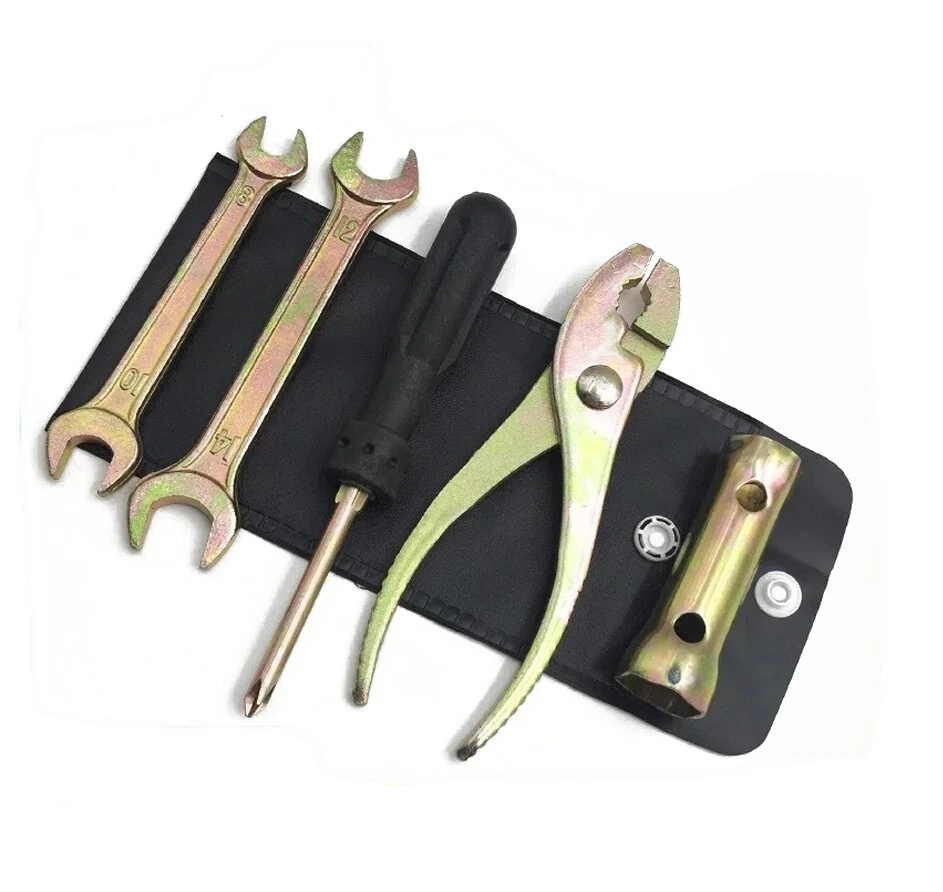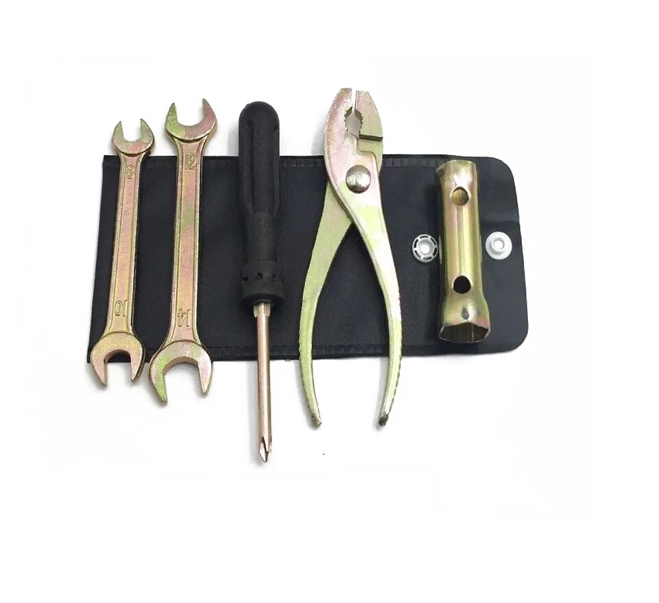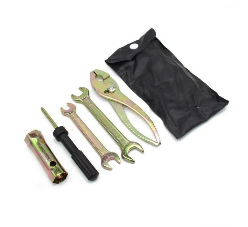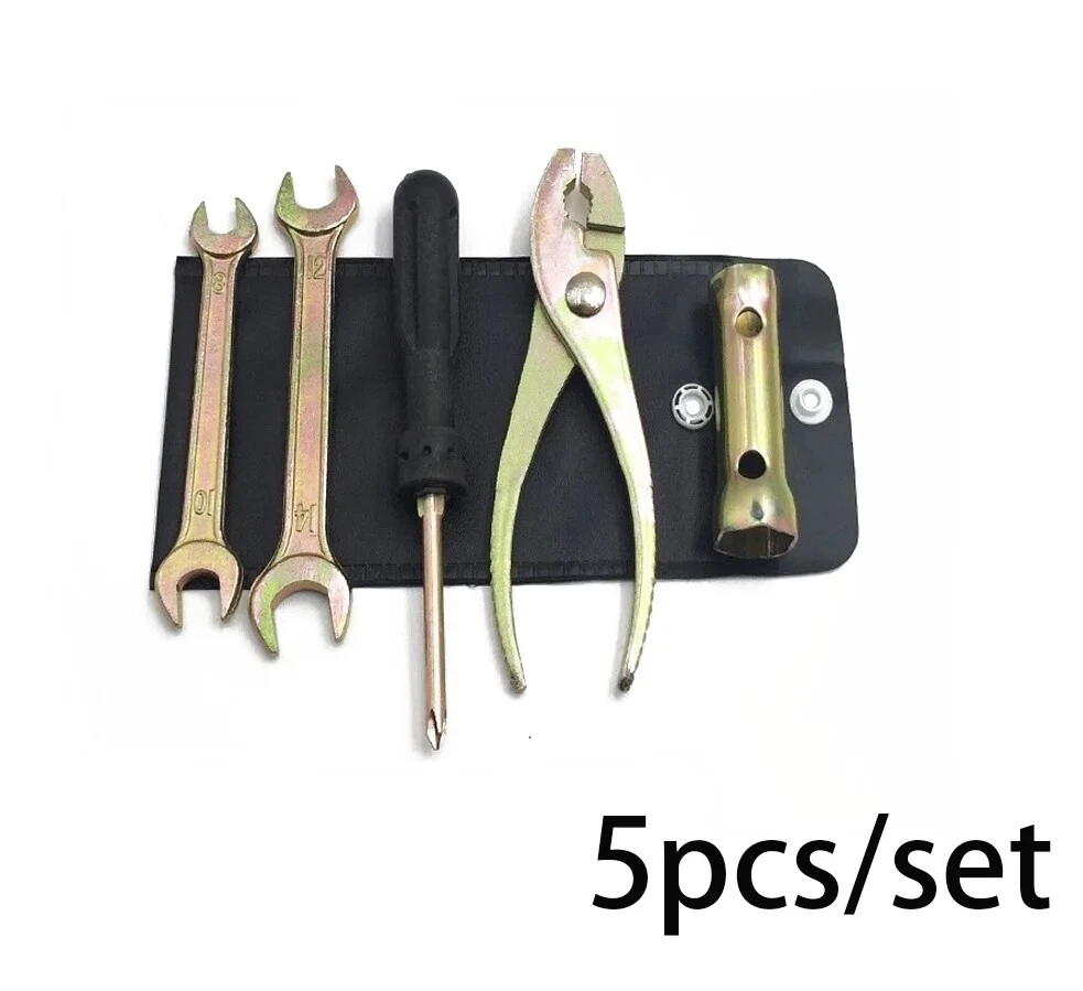 5 Pcs Motorcycle Repair Tool Kit Spanner Wrench Screwdriver Pliers W/Storage Bag