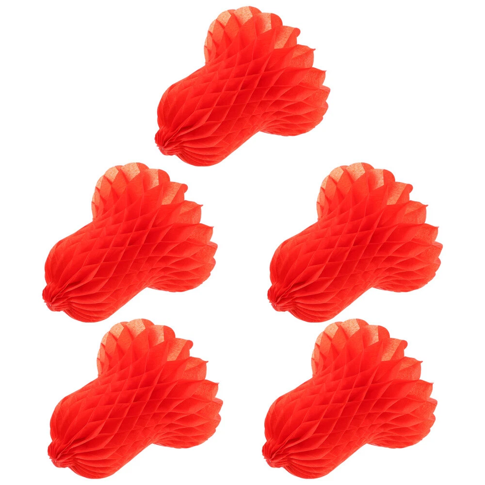 5 Pcs Paper Honeycomb Christmas Tree Hanging Red