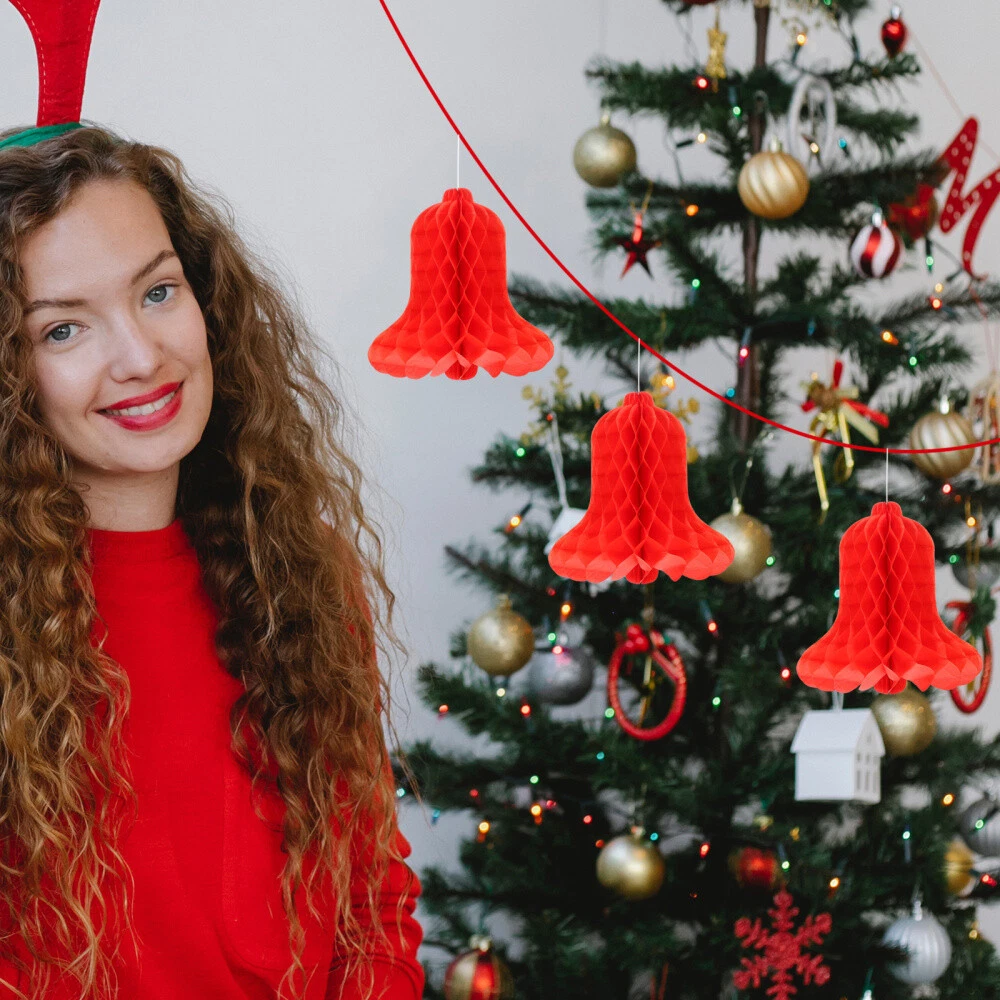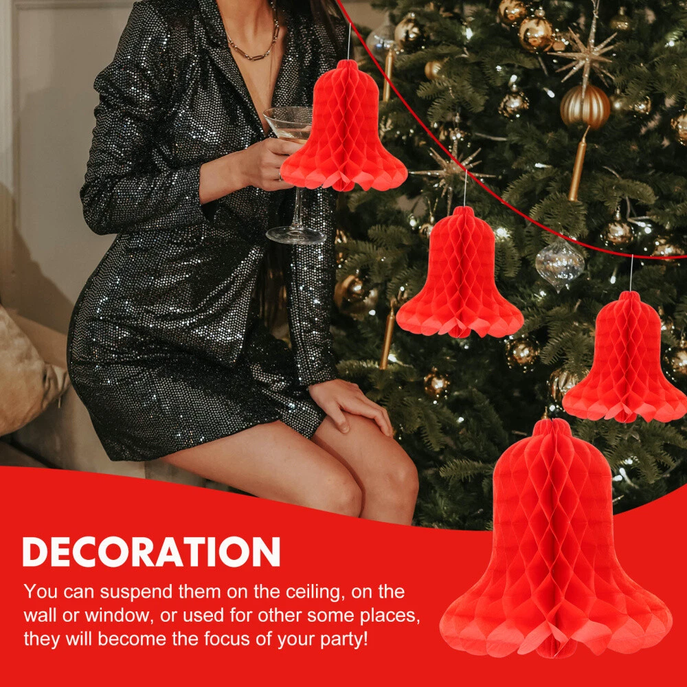 Feature: honeycomb christmas bells Style: Honeycomb Decor Brand: None UPC: does not apply Type: Honeycomb Decor Country/Region of Manufacture: China Material: Paper gtin13: does not apply MPN: RR4170428VWVNYNCE Color: Red Pattern: Honeycomb Decor