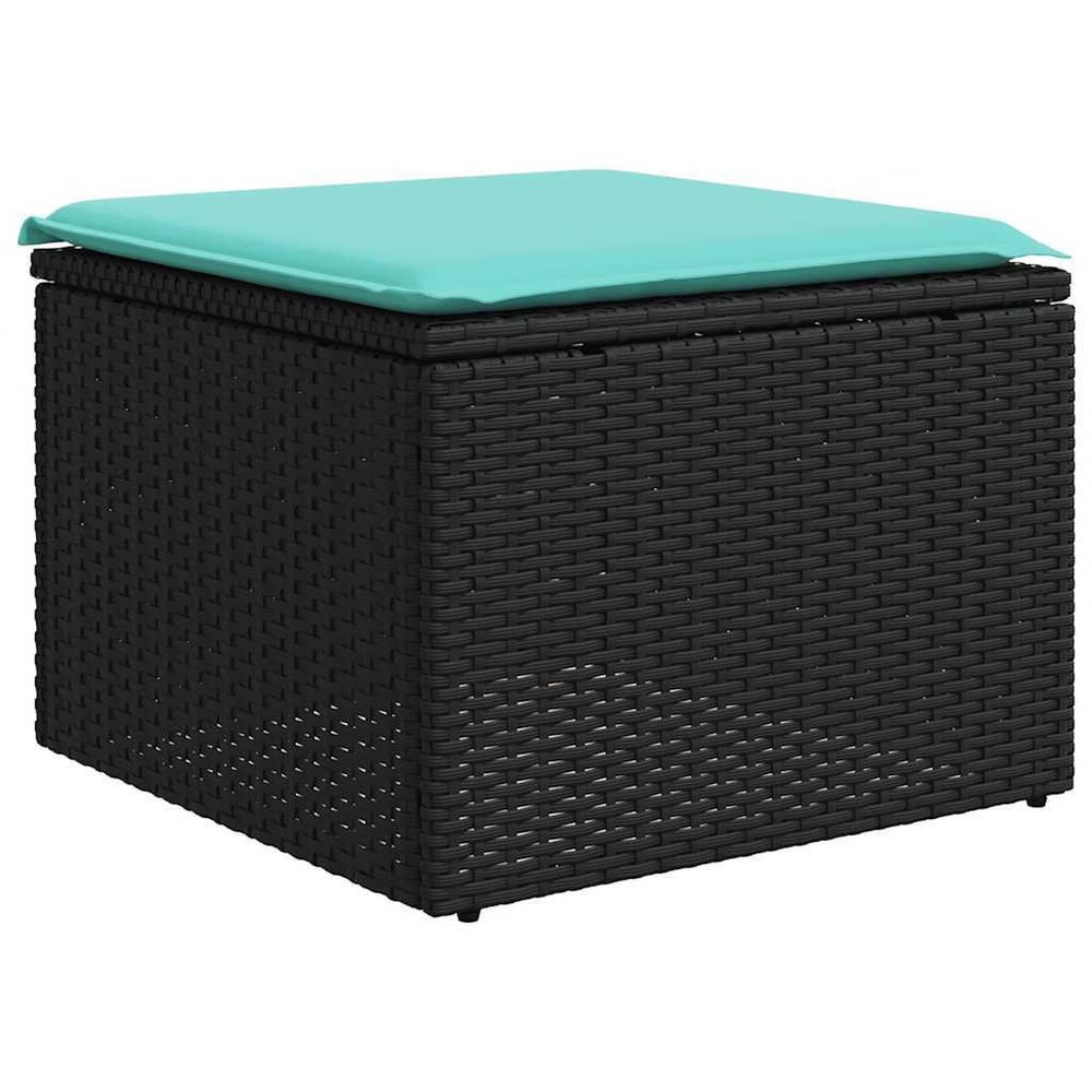 This garden sofa set is the perfect addition to your backyard, terrace, or patio, providing a comfortable and inviting space for chatting with family and friends or simply relaxing and enjoying the outdoors. Durable material: PE rattan, also known as poly rattan, is a strong, low-maintenance synthetic material that looks like natural rattan. It's lightweight, easy to clean, and commonly used for outdoor furniture due to its durability and weather-resistant properties. Convenient side table: This outdoor furniture features a foldable side table with a gas spring on the armrests, providing a convenient spot to keep your essentials within easy reach. Stable and easy-to-clean tabletop: This garden table has an acacia wood top that is sturdy, durable, and easy to clean with a damp cloth. Removable and washable cover: These seat cushions feature removable covers for easy washing and maintenance. Modular design: This outdoor furniture set has a modular design, making it completely flexible and easy to move around, so you can create a customised outdoor furniture arrangement. Good to know: To make sure your outdoor furniture stays beautiful, we recommend protecting it with a waterproof cover. Maximum load capacity (per seat): 110 kg UV-resistant Plastic adjustable feet Assembly required: Yes Centre seat: Colour: Black Material: PE rattan, powder-coated steel Dimensions: 55 x 62 x 69 cm (W x D x H) Seat size: 55 x 55 cm (W x D) Seat height from the ground: 37 cm Arm sofa: Colour: Black Material: PE rattan, powder-coated steel Dimensions: 62 x 62 x 69 cm (W x D x H) Seat size: 55 x 55 cm (W x D) Seat height from the ground: 37 cm Armrest height from the ground: 55 cm Side table size: 25 x 23 cm (L x W) Footstool: Colour: Black Material: PE rattan, powder-coated steel Dimensions: 55 x 55 x 37 cm (W x D x H) Seat size: 55 x 55 cm (W x D) Seat height from the ground: 37 cm Table: Colour: Black Material: PE rattan, powder-coated steel, solid acacia wood with an oil finish Dimensions: 55 x 55 x 37 cm (L x W x H) Cushion: Colour: Blue Cover material: Fabric (100% polyester) Seat cushion filling material: Foam Back cushion filling material: Cotton fibre Seat cushion dimensions: 55 x 55 x 3 cm (W x D x T) Back cushion dimensions: 55 x 45 x 13 cm (L x W x T) Delivery contains: 1 x Centre seat 2 x Arm sofa 1 x Footstool 1 x Garden table 3 x Back cushion 4 x Seat cushion with removable and washable cover California Proposition 65