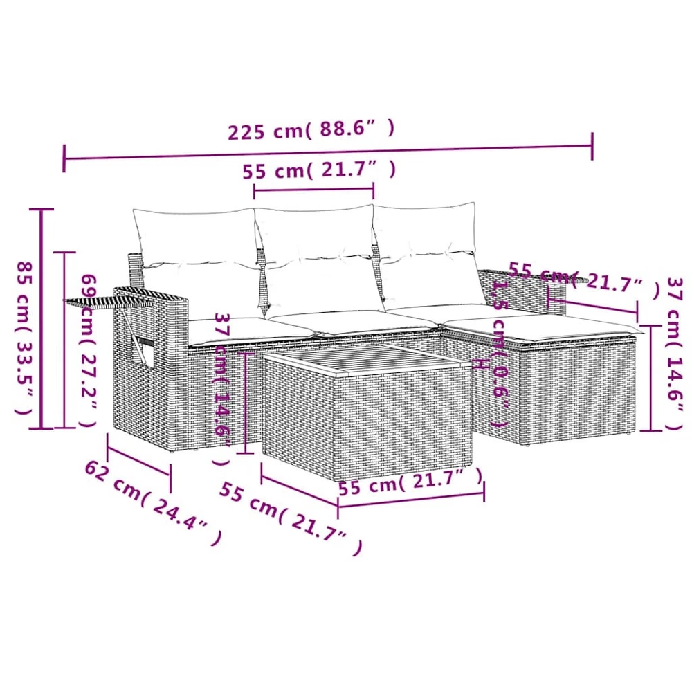 5 Piece Garden Sofa Set with Cushions Black Poly Rattan