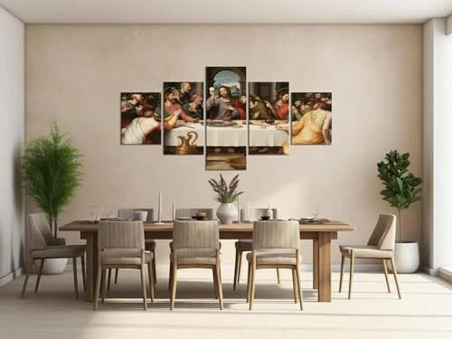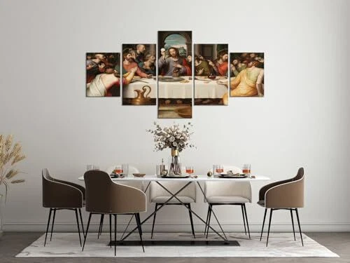 Return Policy Fast Delivery Trusted seller 5 Piece Jesus Canvas Prints Wall Art Modern Classic The Last Supper Famous Oil Painting by Da Vinci Reproduction Posters and Prints Ready to Hang for Home Office Decor (70''W x 40''H) Product Description SIZE Of JESUS PAINTING: 14x20inchx2pcs+14x28inchx2pcs+14x40inch x1pc. MATERIAL OF CHRISTIAN WALL ART DECOR: 1. high-quality canvas: moisture-proof, UV-resistant, thick and friendly-environment coating; 2. sturdy wooden frame: thick, not easy to deform, light. PACKING WAY OF JESUS PICTURE: Your products will be packed with FILM PLASTIC and CARTON. Each panel of canvas has been already stretched to solid wooden frame of hook ready to hang. THE LAST SUPPER WALL DECOR: A perfect wall decorations paintings for living room, bedroom, office, hotel, etc. A great gift idea for your relatives, friends, classmates, workmates, etc. 100% WORRY-FREE SERVICE: Supply with 24 hours pre-sale and after-sale online service to ensure you buy it without any worry! If you have any questions of christian poster, we will make you satisfied. Shipping Returns Payment Shipping Shipping is FREE to all addresses other than APO/PO boxes in the lower 48 states. All our stock ships from US-based warehouses. Shipped via USPS or UPS (depending on location and package weight) Unless stated otherwise, all orders will ship within 24-72 hours of your payment being processed. Check our feedback to see the great reviews of FAST shipping we offer. Returns Seller does not accept returns Payment We currently accept payment via eBay managed payments only. Once payment is cleared, we will dispatch your shipment within 1-3 business days. Please refer to the "Shipping" tab for more information regarding shipping speed to your destination.
