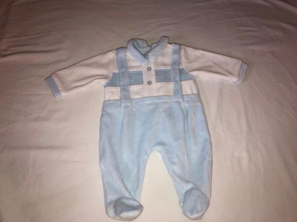 This 5 piece lot of clothing is perfect for your little baby boy! It includes a fleece outfit from a designer baby shop in Scotland, three piece outfit with jacket from Carters, sleep sack from M&S UK, and mittens for Target, all in size 0-3 months. The blue cotton material is soft and cozy, perfect for winter. The clothing is suitable for everyday wear. Whether you're looking for a cute outfit or something practical for your baby, this lot has it all. I loved this sleep sack I now have the bigger size for my baby now, very cozy and easy to get on will last up to 6 months. mittens are not used at all i over bought these and never used them my baby was not a fan of them. the fleece outfit I worn once for photo so cute on and baby got lots of complements. The three piece outfit I love for going out so cute and easy to put on. From a pet and smoke free home