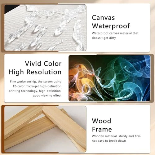 Menu 1. We require immediate payment. 2. We currently accept payment via eBay managed payments only. 3. Once payment is cleared, we will dispatch your shipment within 1-3 business days. Please refer to the "Shipping" tab for more information regarding shipping speed to your destination. 5 Pieces Modern Large Canvas Wall Art Colorful Waves Abstract Smoke Effect Pictures Paintings on Canvas for Living Room Bathroom Bedroom Home Office Decor Product description Size : Multi piece set comes with 5 sizes of canvas prints. 12 x 24 inch x 2 pcs, 12 x 28 inch x 2 pcs, 12 x 32 inch x 1 pcs. Total size of 5 pieces if placed together without spaces is 60 x 32 inch High Definition Canvas Prints : Quality glossy canvas with long lasting durability Printed at high resolution using the latest state of the art color technology ensures sharp & vibrant images every time Ready to Hang : Your framed wall art is carefully packaged in bubble wrap and cardboard to ensure it arrives in perfect condition. Each panel has been stretched on wooden frame with hooks mounted on the back, and we also equipped with seamless nails in the package Widely Used : It is a beautiful decoration for living room, bedroom, dining room, kitchen, bathroom, hallway, guest room, yoga room, office, children's room, cafe, restaurant and hotel. This contemporary painting will brighten up your room Perfect Decorations : This framed canvas art wall decor is a wonderful idea for many occasions such as Christmas, New Year, moving to a new house or housewarming party for your relatives and friends PLEASE MESSAGE US IF YOU HAVE ANY OTHER QUESTIONS, AND MANY THANKS FOR READING ALL OF THIS. Copyright ©#. All Rights Reserved.