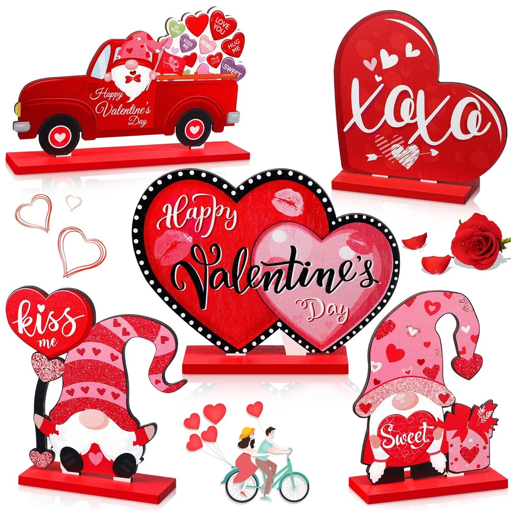 Valentine's Day Table Decoration: you will get 5 pieces of Valentine's Day wooden decorations in 5 delicate styles, sufficient quantity and various styles to meet your different decorative needs, and you can also share with your family and friends Proper Sizes: the highest height of this set of Valentine's Day table decoration is approx. 13 cm/ 5.51 inches, and the longest length at the bottom is approx. 20 cm/ 7.87 inches; The proper size is befitting for decorating your desk, bookcase, counter, shelf and more Using Them in Confidence: these beautiful Valentine's Day table centerpieces are made of quality wood, printed with delicate patterns, not easy to fade, which will enhance the festive atmosphere, and you and your family will love them Wide Range of Applications: these happy Valentine's Day wooden signs are ideal decorations for Valentine's Day table, dining table, gatherings, themed parties and so on, and they can also be applied as souvenirs, which will bring a fun and happy atmosphere to your party and home As an Ideal Gift: the indoor valentines decorations are suitable present choices, and the Valentines related words on the decorations help to express your love; You can send them to your friends or family members, and they will like these charming stuff, feeling your love and care