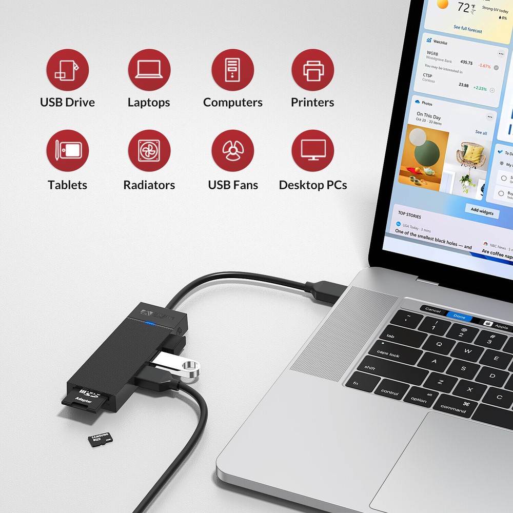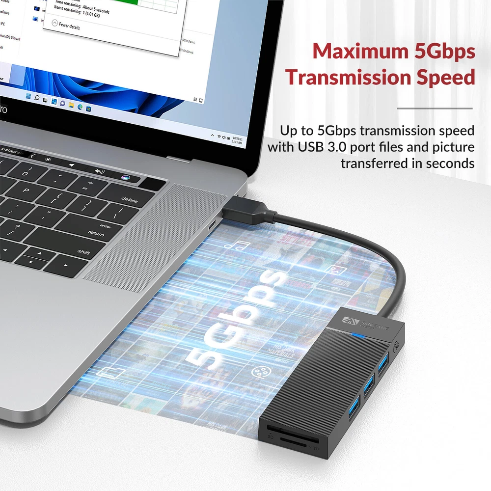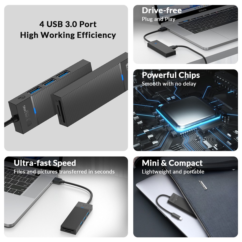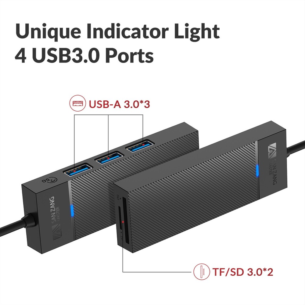 Product features: 【5Gbps high-speed transmission】 3-port USB Hub 3.0 5Gbps transmission speed, can transfer a high-definition movie in 3-5 seconds. Backward compatible with USB 2.0, 1.1, also with TF/SD 3.0*2 simultaneous reading (common channel) 【USB 3.0 Hub Easy to Expand】 The USB hub is divided into 3 USB 3.0 ports and a TF/SD reader, which can easily connect your USB-A devices to the laptop. Can be connected to USB flash drives, keyboard, mouse, gamepad, hard disk drives and more 【Plug & Play】 No need to install drivers, connect the USB 3.0 port of your laptop and enjoy fast data synchronization at 5Gbps, support hot swap. 【Compatibility】 Driver-free compatible with Windows, Mac OS 10.X and above, Linux, Android and other systems.USB hub for laptop, computer tower, XBOX, PS4, flash drive, keyboard, mouse, card reader, hard drive, phone OTG adapter, USB fan 【Stable & Safe】 Equipped with a powerful main control chip, data transmission is stable and efficient, and it can read two 1TB 2.5-inch solid-state drives at the same time. Small and lightweight, suitable for business/travel/work. USB hub not powered ⚠️ Means very slow charging. This USB 3.0 hub is designed for syncing data transfers, not charging. We recommend you do not use it to charge your phone or other devices. Specification: Name: 3-port USB-A 3.0 TF/SD hub Material : ABS Product size : 98*34*12mm Input port : USB-A Output port : USB-A 3.0*3 5Gbps, TF/SD 3.0*2 Support system : Windows, Mac OS, Linux Package includes: 1 x 3-Port USB A Hub 3.0 TF/SD 3.0*2 Note: Please allow 1-3cm difference due to manual measurement. Due to the light and screen difference, the item's color may be slightly different from the pictures.