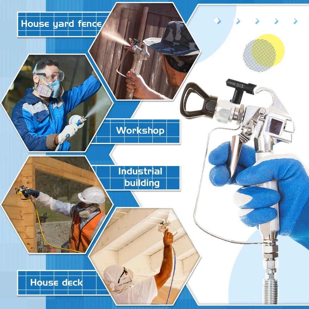 Features: Long service life: Adopting quality stainless steel material, our reversible airless spray tip is quality and not easy to break and wear, not easy to deform and thus offers you a better using experience. Nice gift: You can send this practical reversible spray tip as a gift to your father, boyfriend, painter, worker and so on, offering people nice working efficiency. Specifications: Size: 211, 313, 415, 517, 623 Color: black, silver Material: 304 stainless steel, tungsten carbide, nylon Package includes: 5 x Black reversible switch tips Warm notes: Please allow a little error on the size due to manual measurement. The color might exist slight difference due to different displays. Please read the size instruction carefully before purchasing. Nice Compatibility: these paint sprayer tips are compatible with most airless paint sprayers, and 211, 313, 415, 517, 623 correspond to the nozzle diameters of 0.011 inches, 0.013 inches, 0.015 inches, 0.017 inches, 0.023 inches, and the spray range is 4 to 14 inches Considerate Combination: you will get 5 airless sprayer spraying machine parts of different sizes, namely 211, 313, 415, 517, 623; Each is equipped with an airless nozzle and a nozzle seal; Different model combinations can better meet your different needs Broad Utilization: spray tips with a variety of models to choose from to meet your different use needs, such as paint, furniture, fences, home decoration, industrial fine paint and decoration and so on; Also they are applicable for various surfaces and materials, such as industrial enamel, varnish, water based paint, internal and external wall latex paint, fireproof coating Easy Installation: no tools are required to install, and airless spray nozzle can be easily installed on the spray gun in a few simple steps; First, use the nozzle to seal the nozzle into the protective seat, then insert the nozzle into the protective seat and rotate to complete the installation, time saving and labor saving for your project Quality to Use: reversible airless paint sprayer nozzle tip is composed of a 304 stainless steel handle and a tungsten carbide nozzle; The blade tip seal is made of stainless steel tip gasket and nylon, which is odorless, sturdy, simple to clean, and can be cleaned by rotating the nozzle, which can provide you with a long term service life