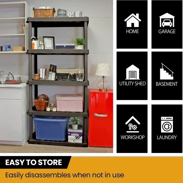 You may also like 3 Drawer Wide Weave Tower Chest Cabinet Durable Storage Organize Lightweight New 31.98 USD 33.66 USD Free shipping 5% off Stainless Steel Percolator Coffee Pot 9 Cup Camping Brew Outdoor Kitchen Classic 48.34 USD 54.76 USD Free shipping 12% off Oval Hand Woven Willow Laundry Basket W/ Handles Washable Liner Sturdy Design 60.26 USD 69.19 USD Free shipping 13% off 17 In Curved Shaft Gas String Trimmer Quick Cutting Coverage Easy Load Comfort 110.56 USD 116.38 USD Free shipping 5% off Modern 2-Door Wooden Entryway Shoe Storage Cabinet Organizer Shelves Dark Brown 79.54 USD 83.73 USD Free shipping 5% off Canton End & Side Table W/2 Built-In USB Ports Storage Drawer Adjustable Shelf 69.95 USD 73.63 USD Free shipping 5% off 3-Shelf Sturdy Bookcase w/Adjustable Shelves Storage Organizer for Bedroom Home 31.9 USD 33.58 USD Free shipping 5% off 10x10 Ft Pop-Up Tent Zippered Mesh Sidewalls Quick Installation Outdoor Privacy 48.99 USD 56.25 USD Free shipping 13% off 10x20 Ft Outdoor Waterproof Canopy Tent Removable Sidewalls Heavy Duty Event New 121.81 USD 139.86 USD Free shipping 13% off Extra Large Capacity Galvanized Steel Post Mount Mailbox W/ Outgoing Flag New 61.49 USD 64.73 USD Free shipping 5% off Emergency Food Supply 124 Servings Freeze-Dried Survival Camping Hiking Meals US 115.62 USD 132.51 USD Free shipping 13% off AC Furnace Air Filter 16x25x4 MPR 1000 MERV 11 Allergen Defense 4-Pack New 124.39 USD 144.29 USD Free shipping 14% off Product details Maximize your storage space with this versatile 5-tier shelving unit, proudly manufactured in North America. The lightweight unit snaps together with no tools required and the heavy-duty molded plastic resin shelves hold up to 150 lbs (68 kg). Whether you are reorganizing your workshop, decluttering the basement, or spring cleaning the garage, Hyper Tough has the perfect shelving solution for you! Includes five fixed H 16 x W 36 x D 18" shelves 750 lb (340 kg) total capacity, 150 lbs per shelf Interlocking design lets you link multiple units Durable recycled plastic will not rust, dent, stain or peel Simple tool-free assembly Ventilation holes let air flow freely around your items Lightweight unit can be moved by one person Nested legs for maximum support Built-in anchor holes offer added security Protect your items from damp floors Dimensions: H 74 x W 36 x D 18 inches (188 x 91.4 x 45.7 cm) You may also like 12 Ft Durable Burlap Ground Blind Material Hunting Blind Glare Free Concealment 19.1 USD 20.1 USD Free shipping 5% off Black Pepper Grinder Refill Whole Peppercorns Spice Flavor Enhancer 5.8 Oz Home 9.47 USD 9.97 USD Free shipping 5% off Coreless Toilet Paper Septic Safe 2 Ply White 1125 Sheets Roll 18 Carton 4.05 In 71.52 USD 75.28 USD Free shipping 5% off Toilet Brush Set 2 Pack Stainless Steel Handle Ergonomic Bathroom Cleaner Tool 20.6 USD 27.88 USD Free shipping 26% off Marble Butter Keeper Water Seal Soft Spreadable Butter Holder Display Stand New 44.91 USD 78.01 USD Free shipping 42% off Extension Cord 3 Prong Grounded Outlet Gauge Sturdy Power Needs Equipment Lights 60.89 USD 64.09 USD Free shipping 5% off Portable 51 Oz Tank Upholstery and Carpet Spot Cleaner Machine Pet Rug Stair Car 110.56 USD 116.38 USD Free shipping 5% off 4 Pack 19 7/8 x 21 1/2 x 1 MERV 8 Pleated Air Filter AC Furnace 3 - 10 Microns 41.55 USD 62.4 USD Free shipping 33% off Cloud Umbrella Stroller Extended Sun Canopy One Handed Fold All-Terrain Storage 47.46 USD 49.96 USD Free shipping 5% off 6.5ft Sq Patio Umbrella Solid Adjustable Outdoors Crank Lift Canopy Air Vent New 45.44 USD 47.83 USD Free shipping 5% off Mini Portable Air Purifier True HEPA Filter W/ Removable Handle Traveling Office 37.99 USD 39.99 USD Free shipping 5% off Reef Crystals Salt Reef Aquariums Extra Calcium Trace Elements Vitamins 200 Gal 86.29 USD 90.83 USD Free shipping 5% off
