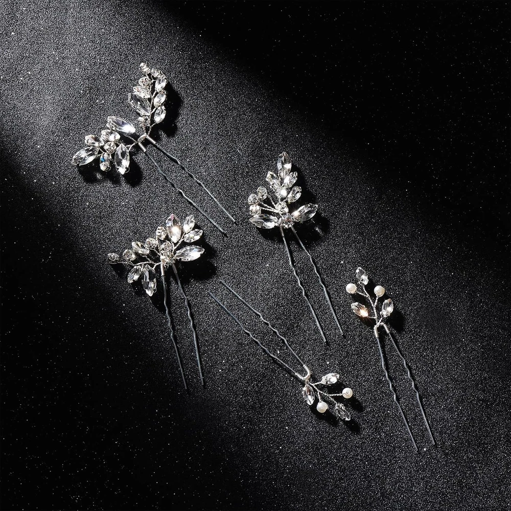 5 Silver Crystal Wedding Hair Pins Rhinestone Bride Accessories Set