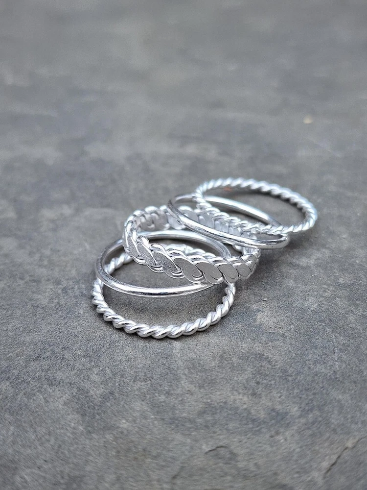 Welcome To My Shop Set of 5 Sterling Silver Stacking Rings, Thick & Thin Silver Ring, Minimalist Rings, Twisted Silver Ring, Women Stacking Ring, Ring Set All my Designs are original. Size - All Size Ring This Ring is for Women You will receive a Ring like the one in the pictures This Ring have 925 Stamp Suitable for use in everyday situations, or can also be used as a gift. Unique design will make a special attraction for the wearer. I make my jewelry with passion and love. The perfect gift for a Special occasion Wholesale Orders Accept on Wholesale Price All Pieces Have 925 Stamp